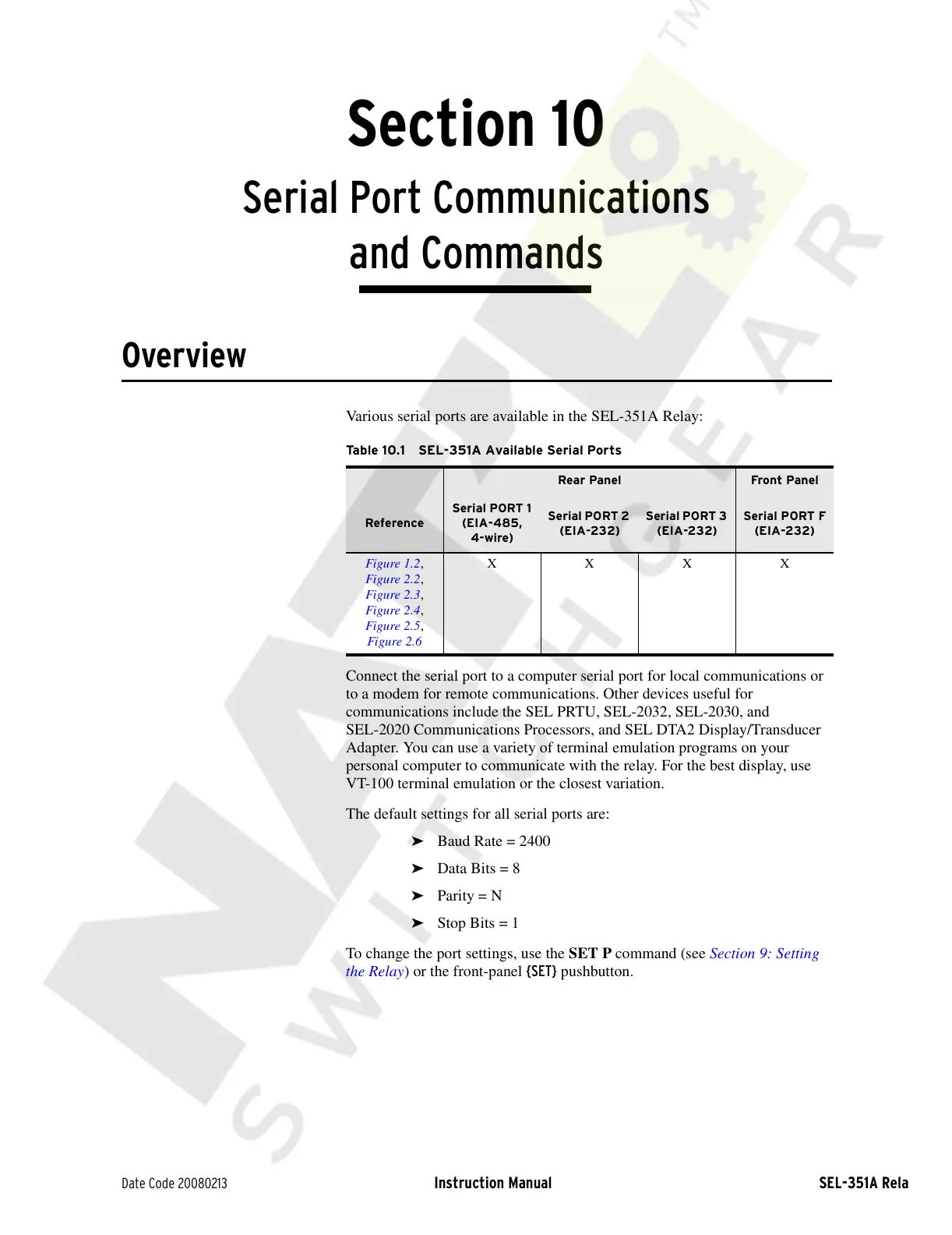 Table 10.1 SEL-351A Available Serial Ports