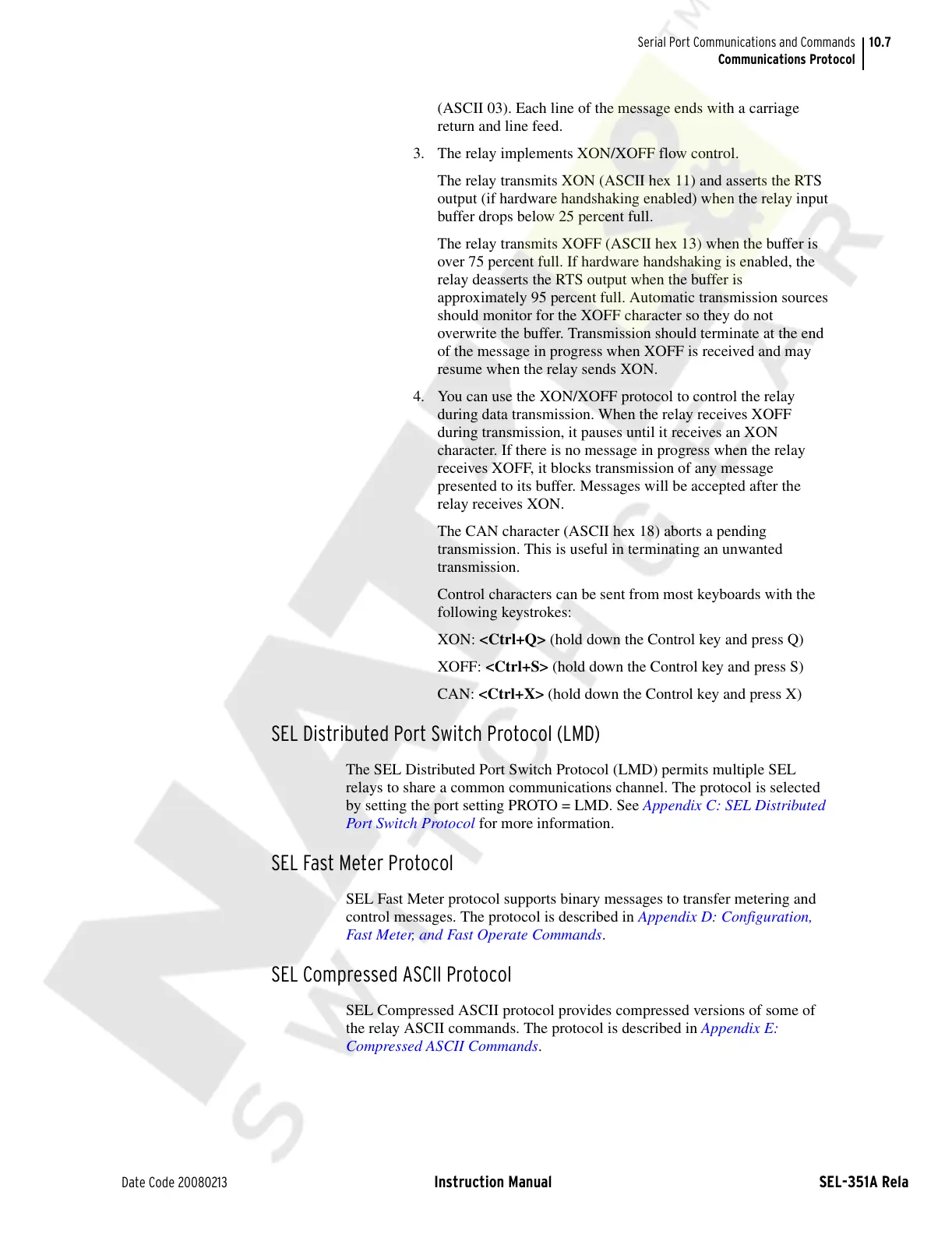 the relay ASCII commands. The protocol is described in Appendix E: