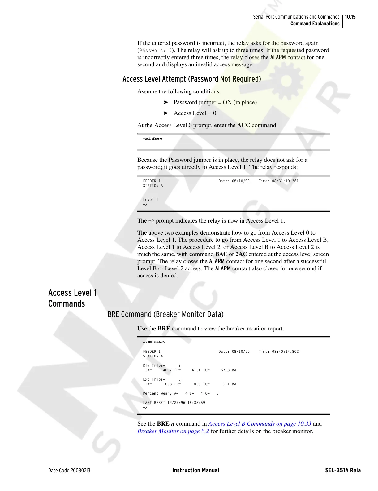 password; it goes directly to Access Level 1. The relay responds: