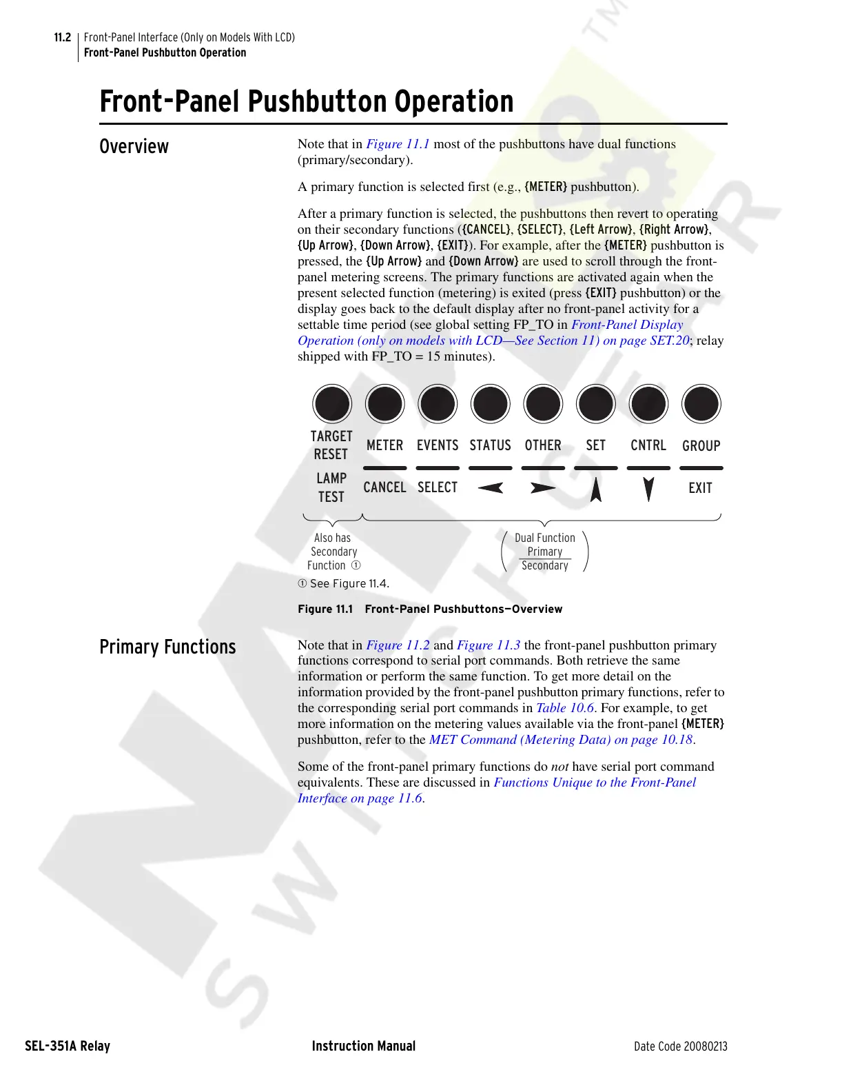 information provided by the front-panel pushbutton primary functions, refer to