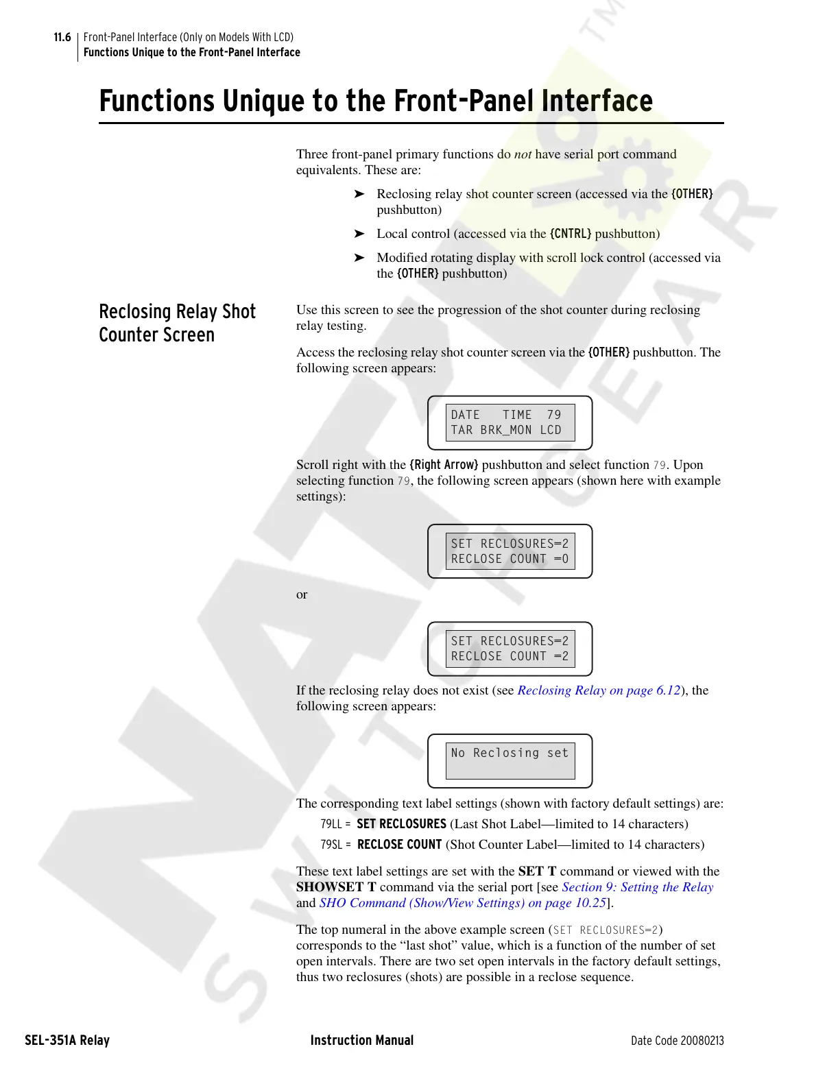 SEL-351A Relay Instruction Manual Date Code 20080213