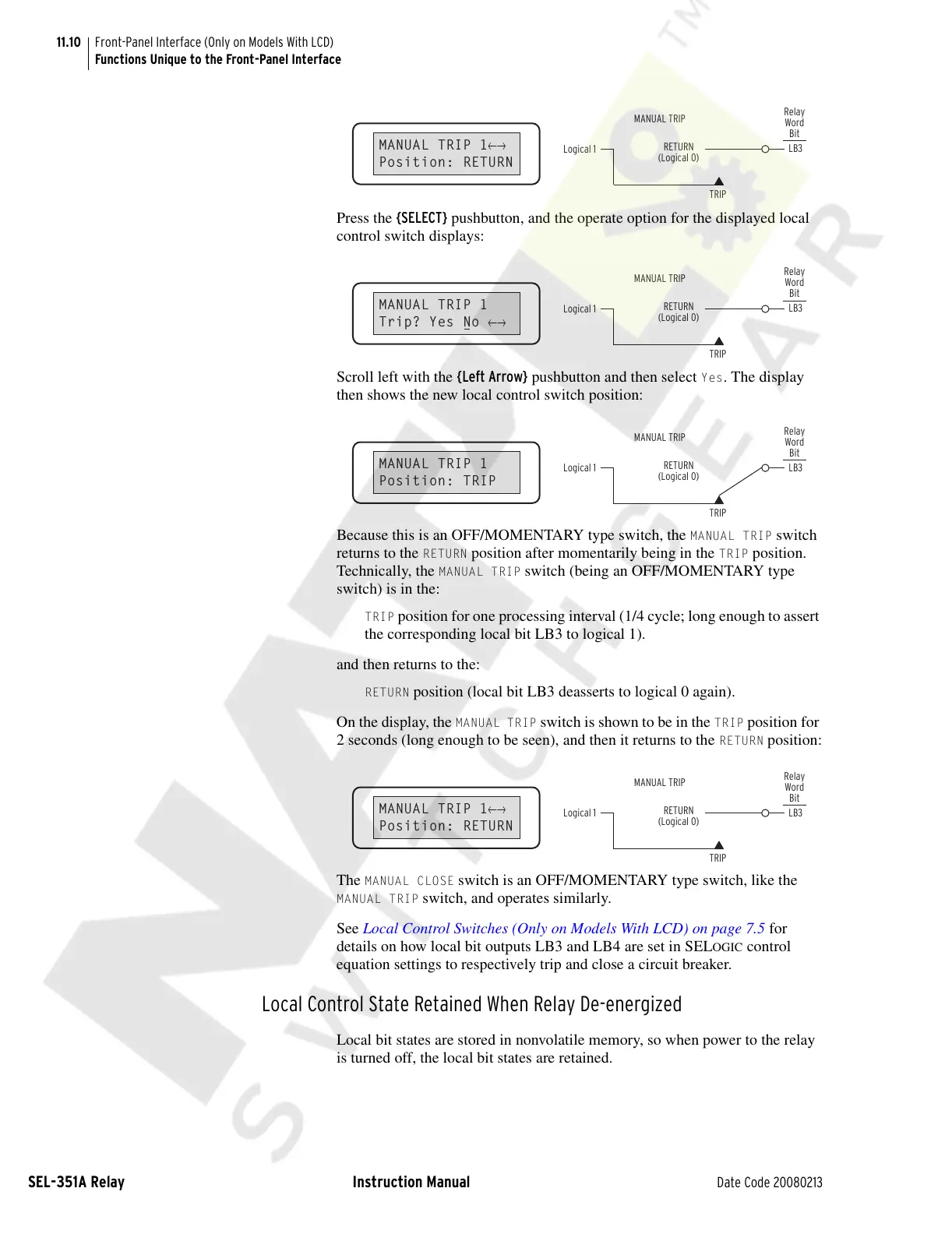 Local Control State Retained When Relay De-energized
