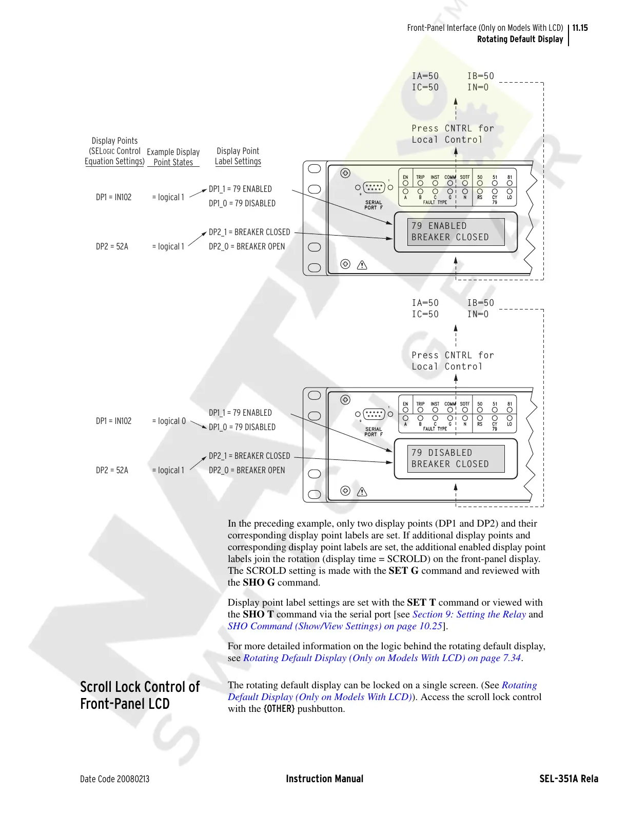 Default Display (Only on Models With LCD)). Access the scroll lock control