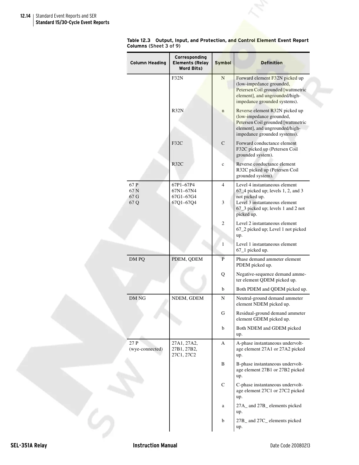 Table 12.3 Output, Input, and Protection, and Control Element Event Report