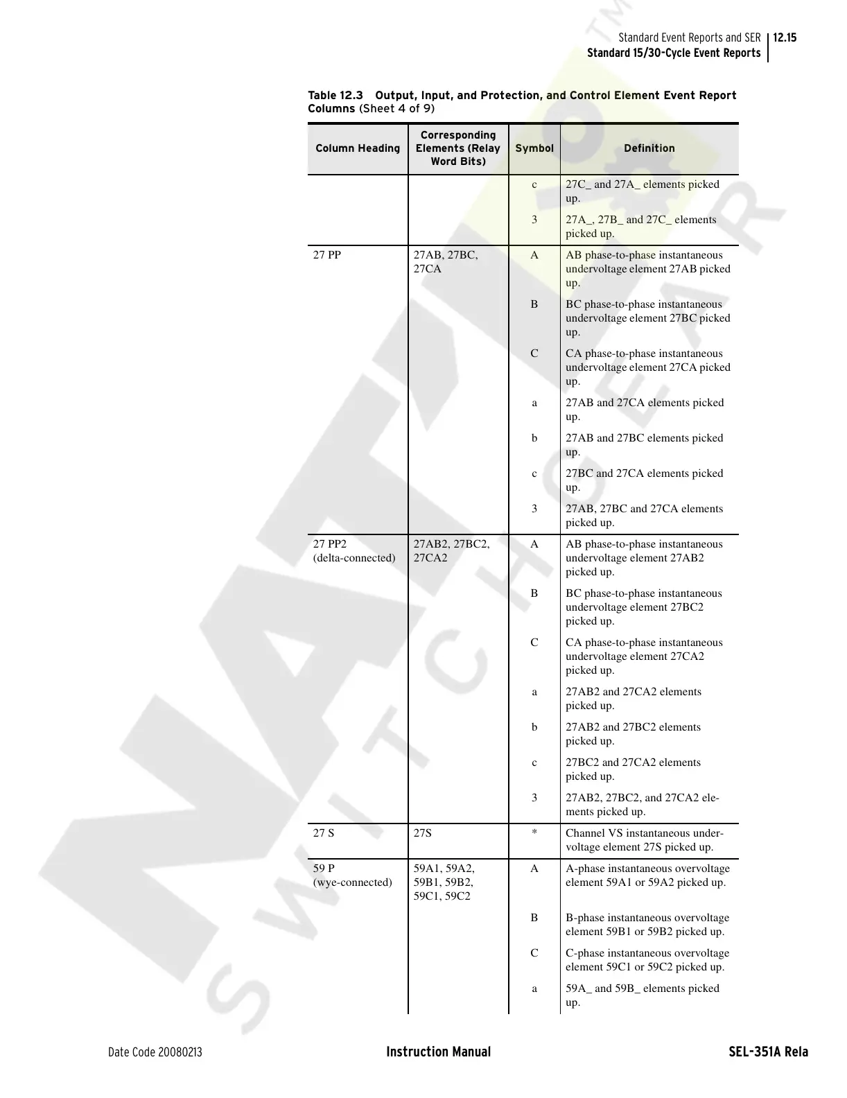 Table 12.3 Output, Input, and Protection, and Control Element Event Report