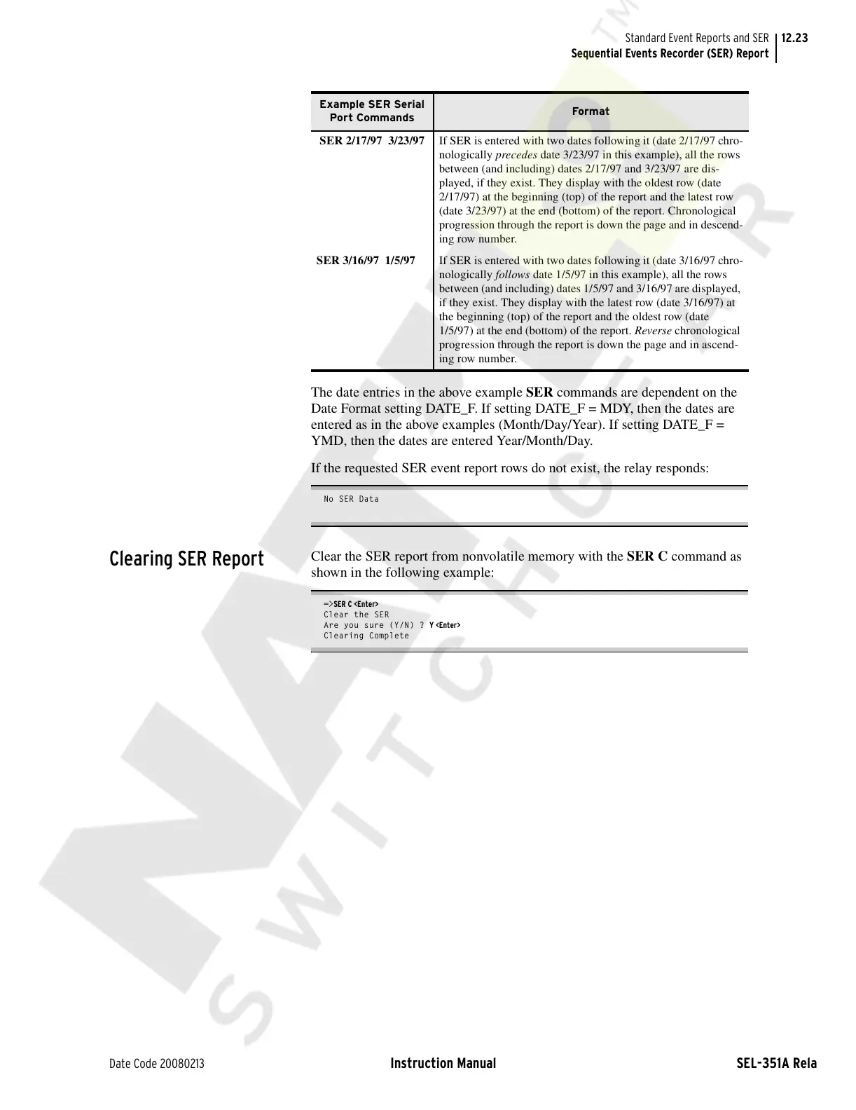 The date entries in the above example SER commands are dependent on the