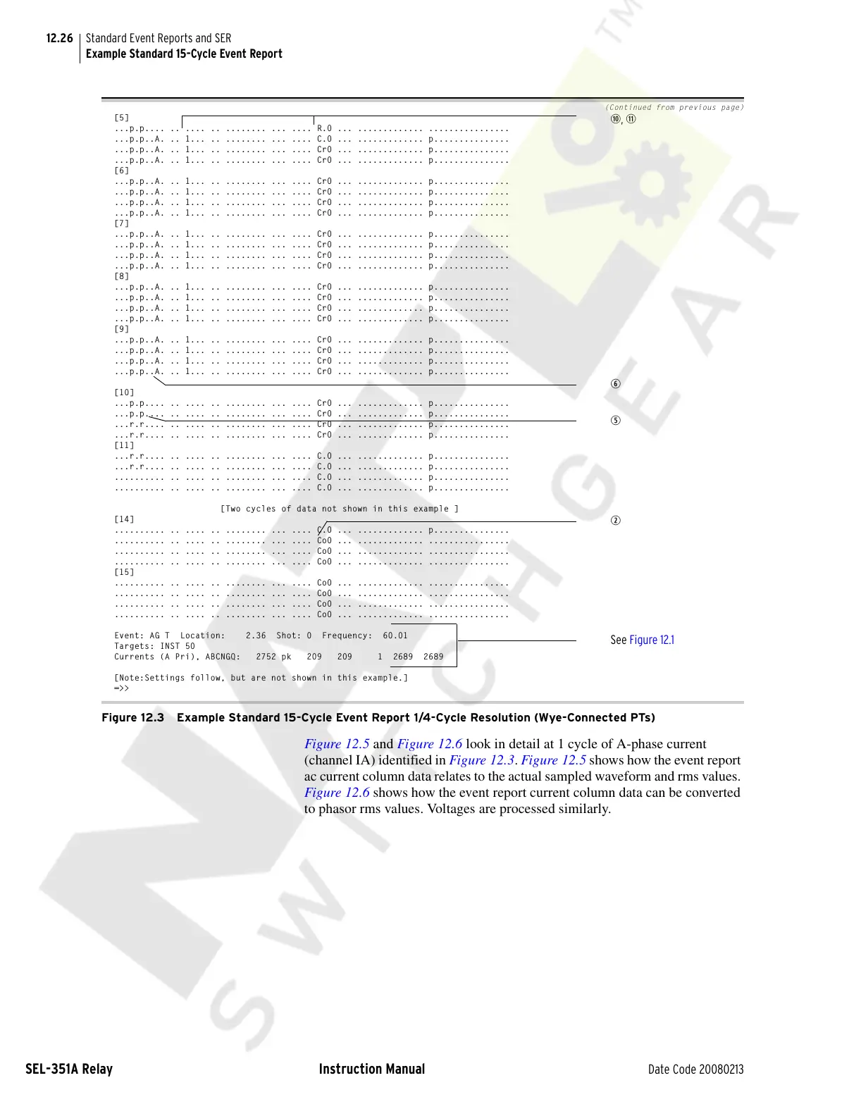 Figure 12.3 Example Standard 15-Cycle Event Report 1/4-Cycle Resolution (Wye-Connected PTs)
