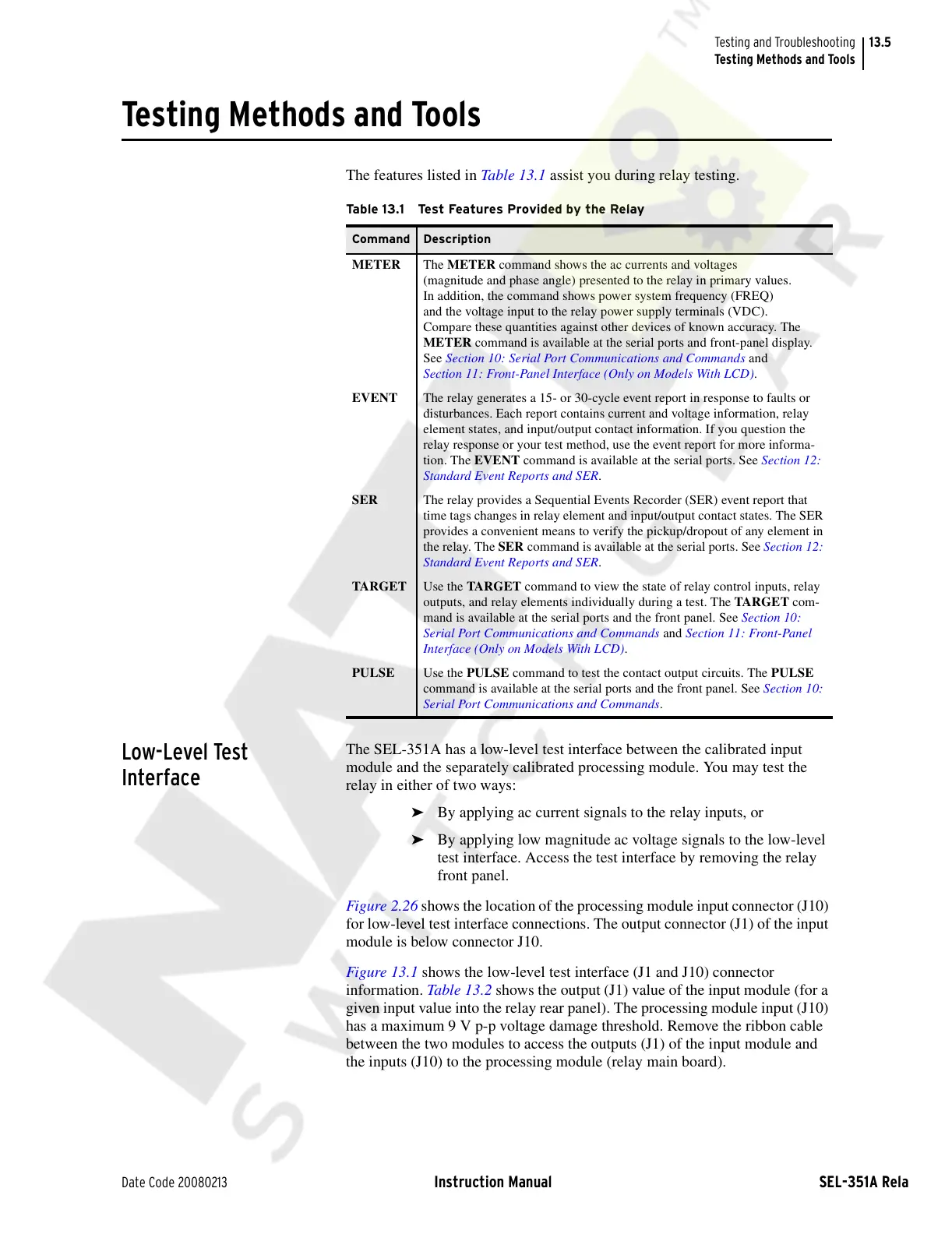 Figure 13.1 shows the low-level test interface (J1 and J10) connector