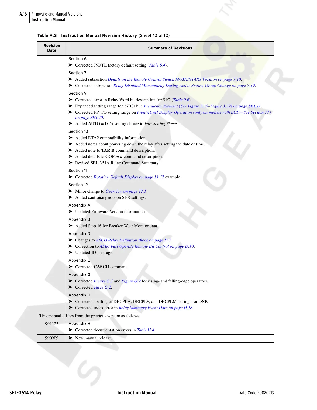 Table A.3 Instruction Manual Revision History (Sheet 10 of 10)
