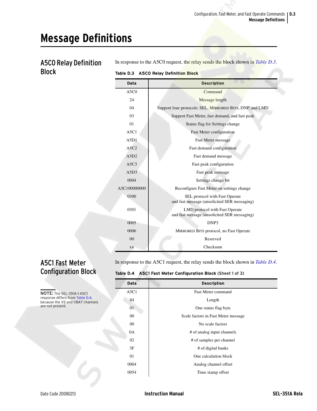 Table D.4 A5C1 Fast Meter Configuration Block (Sheet 1 of 3)