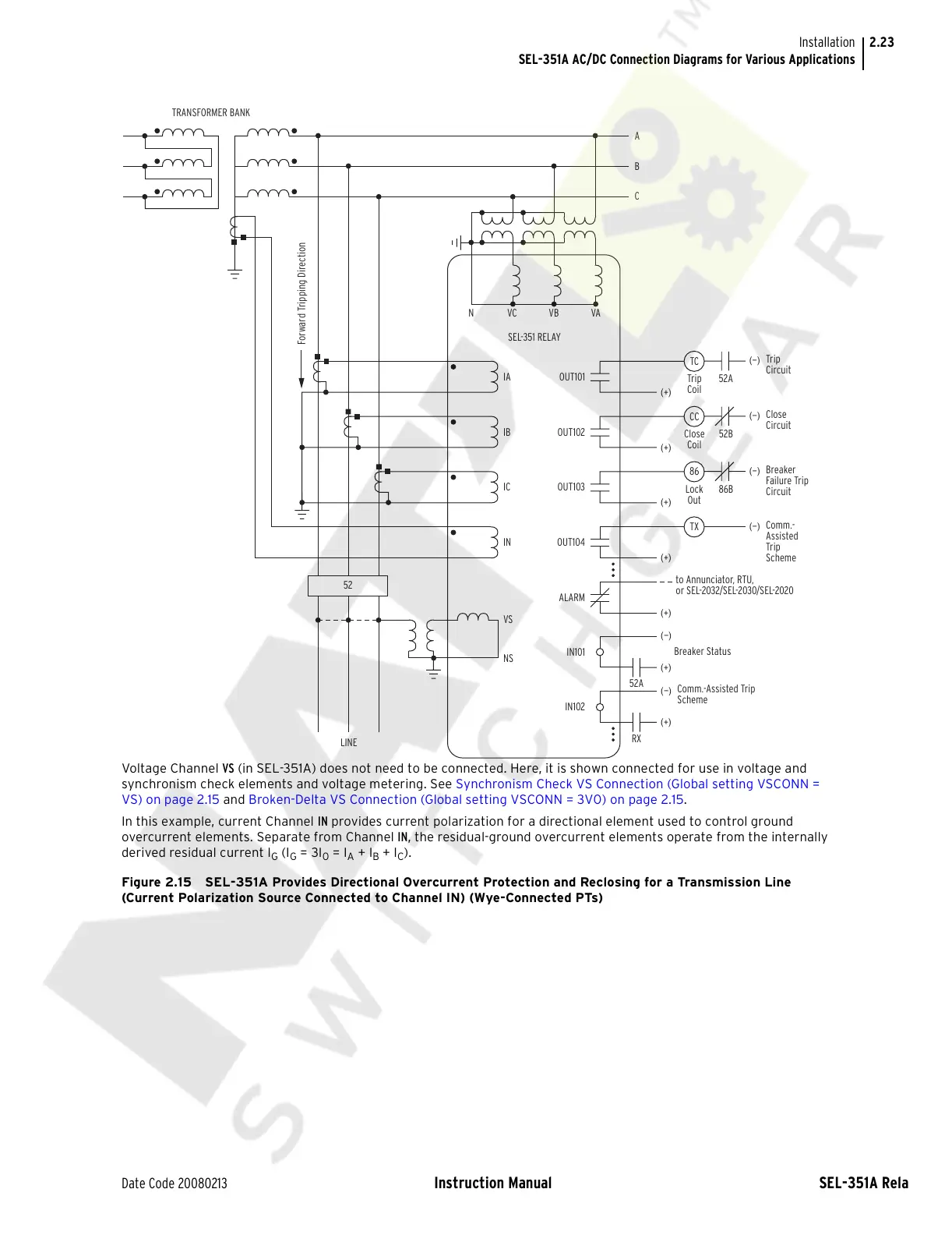 Voltage Channel VS (in SEL-351A) does not need to be connected. Here, it is shown connected for use in voltage and