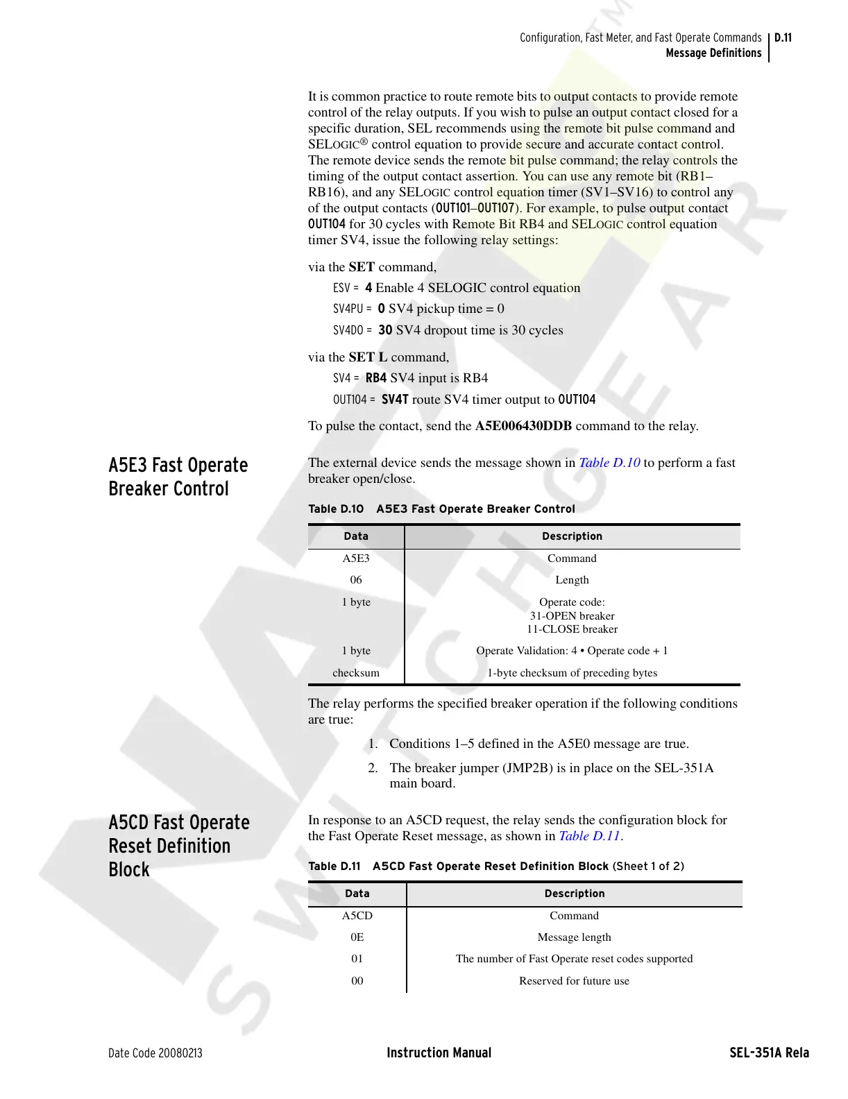 Table D.11 A5CD Fast Operate Reset Definition Block (Sheet 1 of 2)