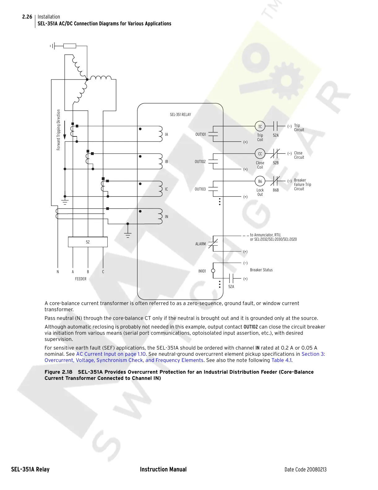 Figure 2.18 SEL-351A Provides Overcurrent Protection for an Industrial Distribution Feeder (Core-Balance
