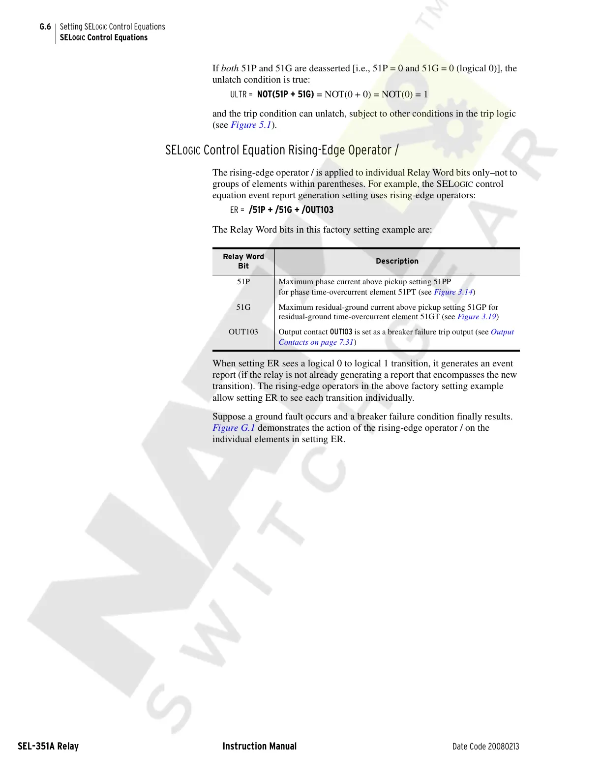 SELOGIC Control Equation Rising-Edge Operator /