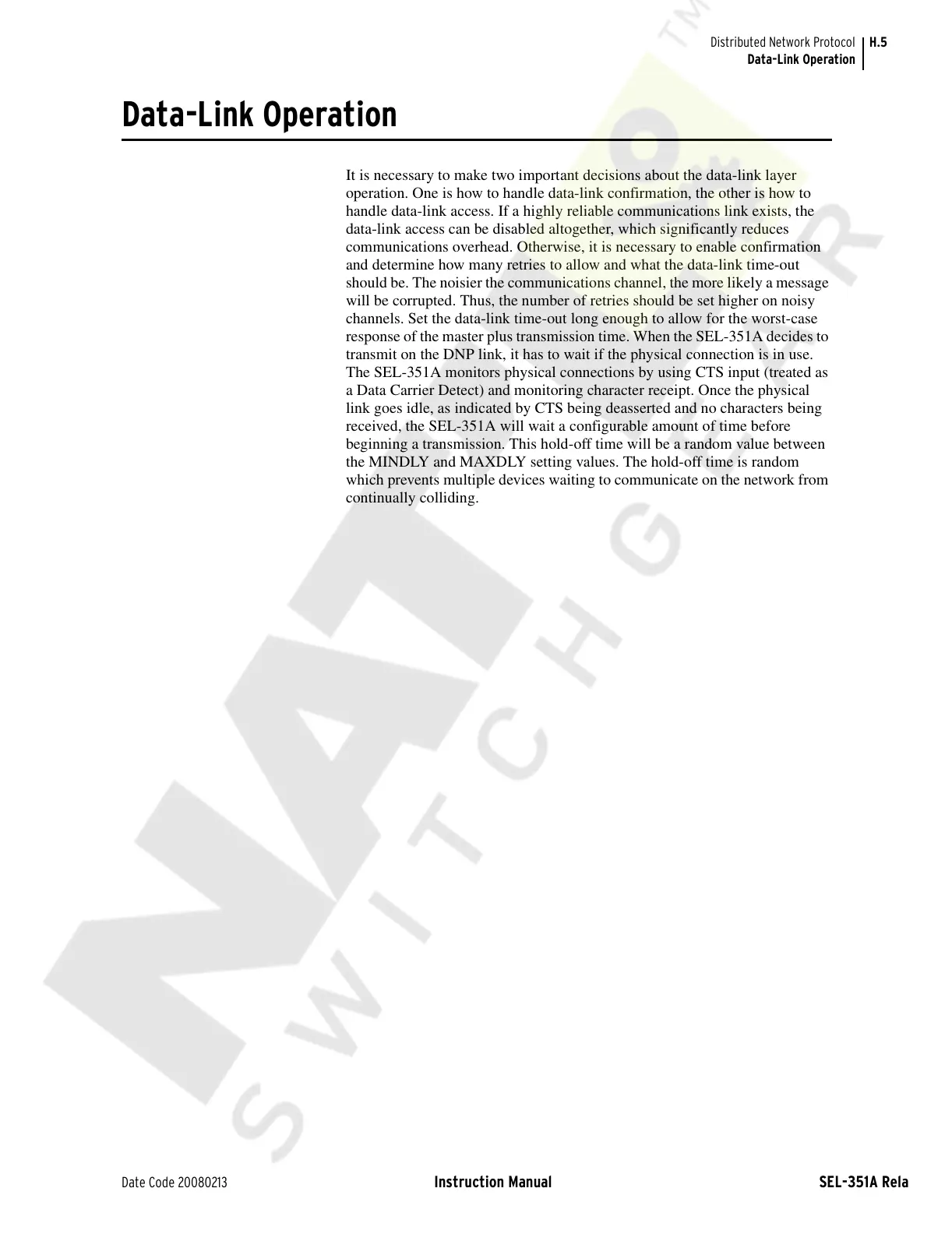 transmit on the DNP link, it has to wait if the physical connection is in use.