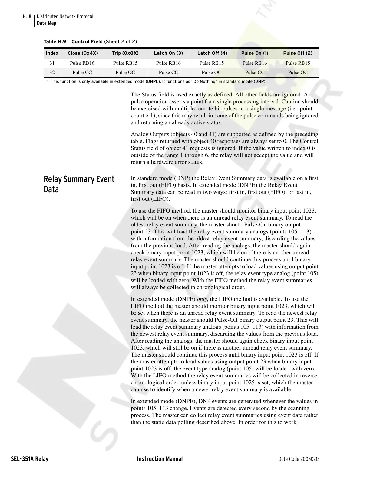 in, first out (FIFO) basis. In extended mode (DNPE) the Relay Event