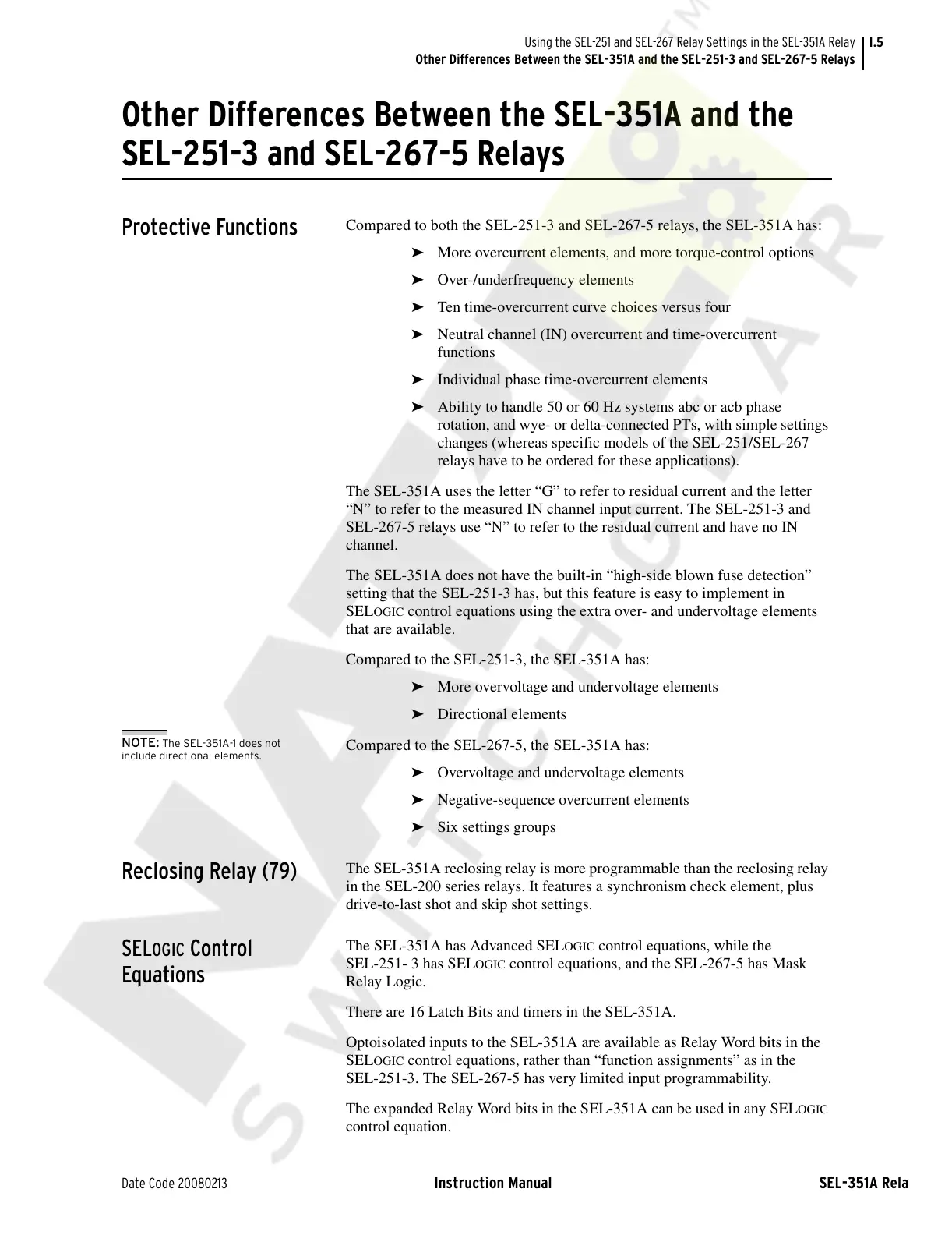 NOTE: The SEL-351A-1 does not