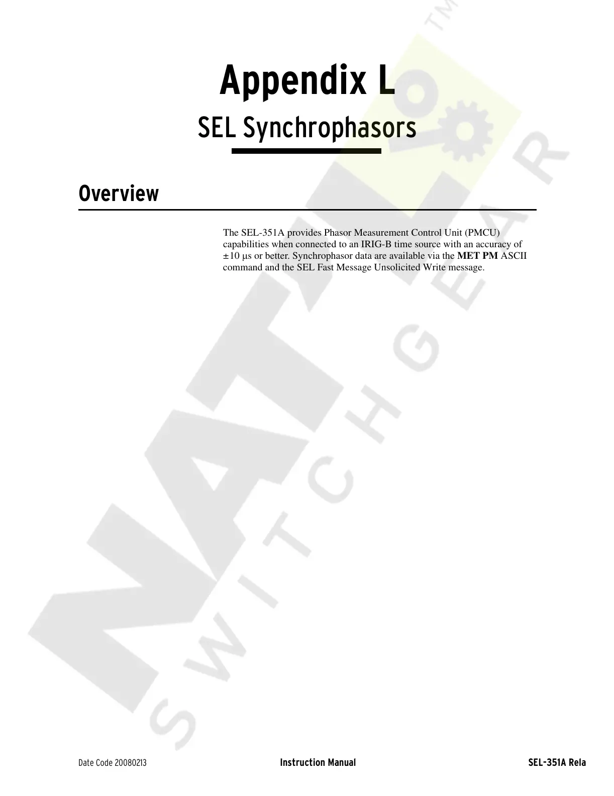 Date Code 20080213 Instruction Manual SEL-351A Relay