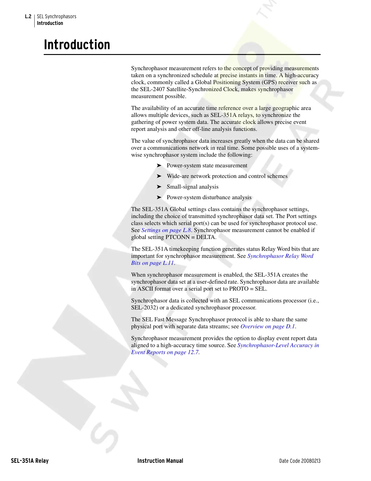 See Settings on page L.8. Synchrophasor measurement cannot be enabled if