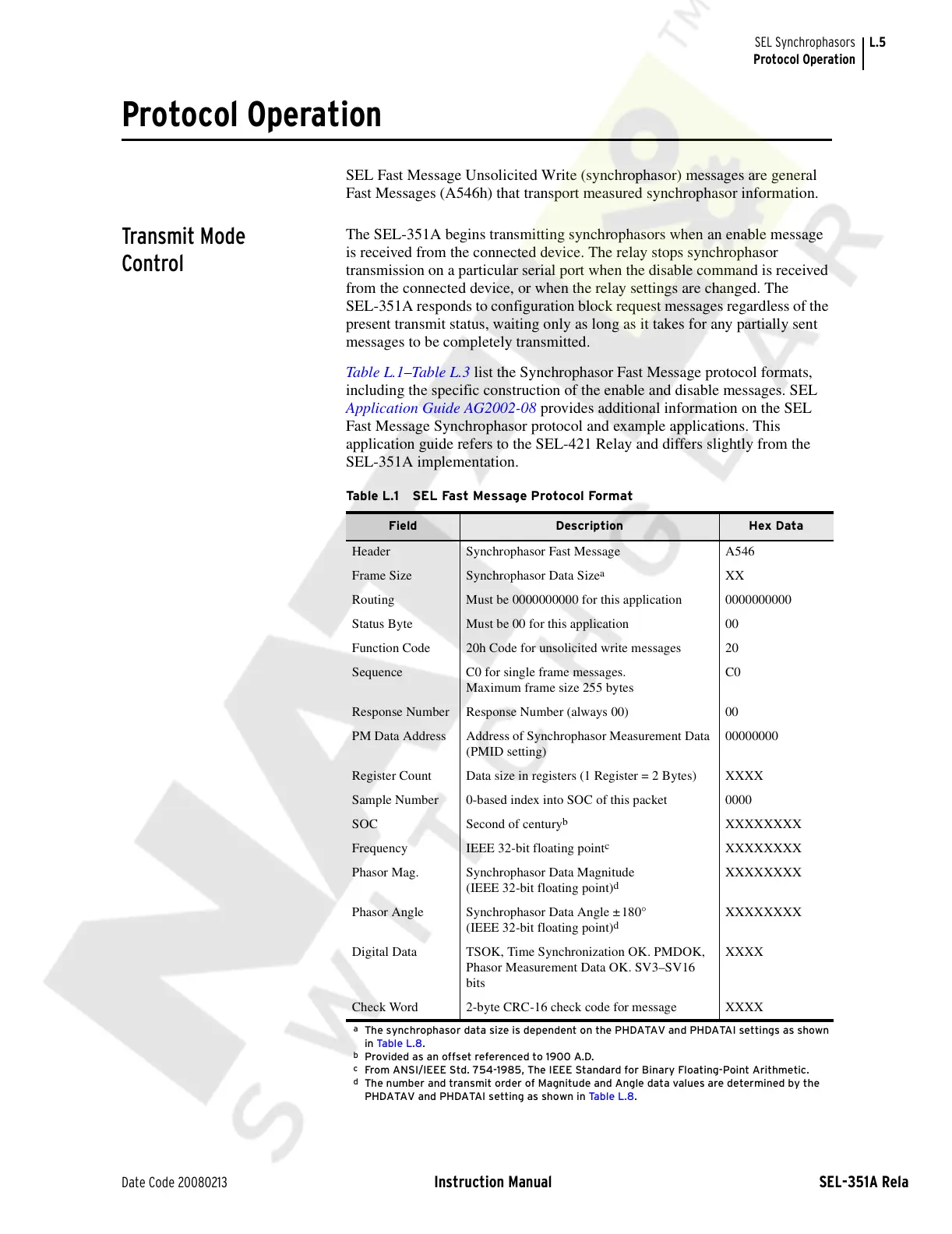 Table L.1 SEL Fast Message Protocol Format
