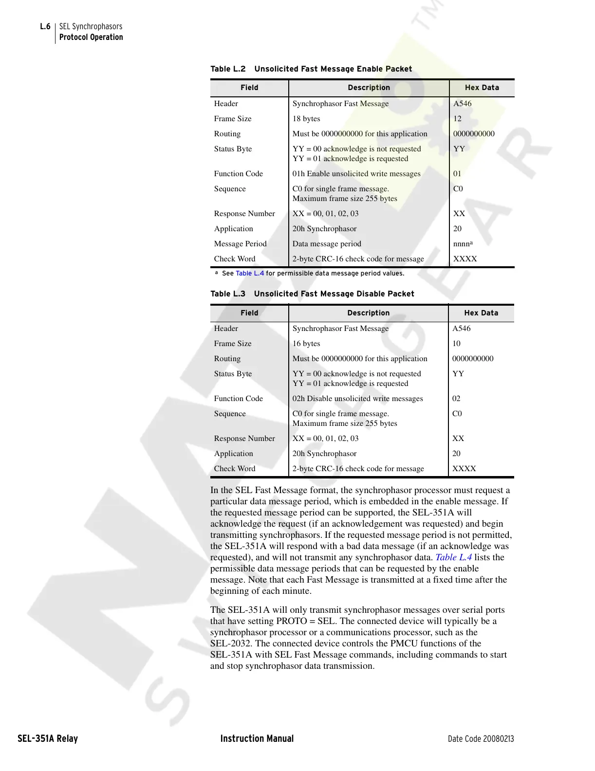 requested), and will not transmit any synchrophasor data. Table L.4 lists the