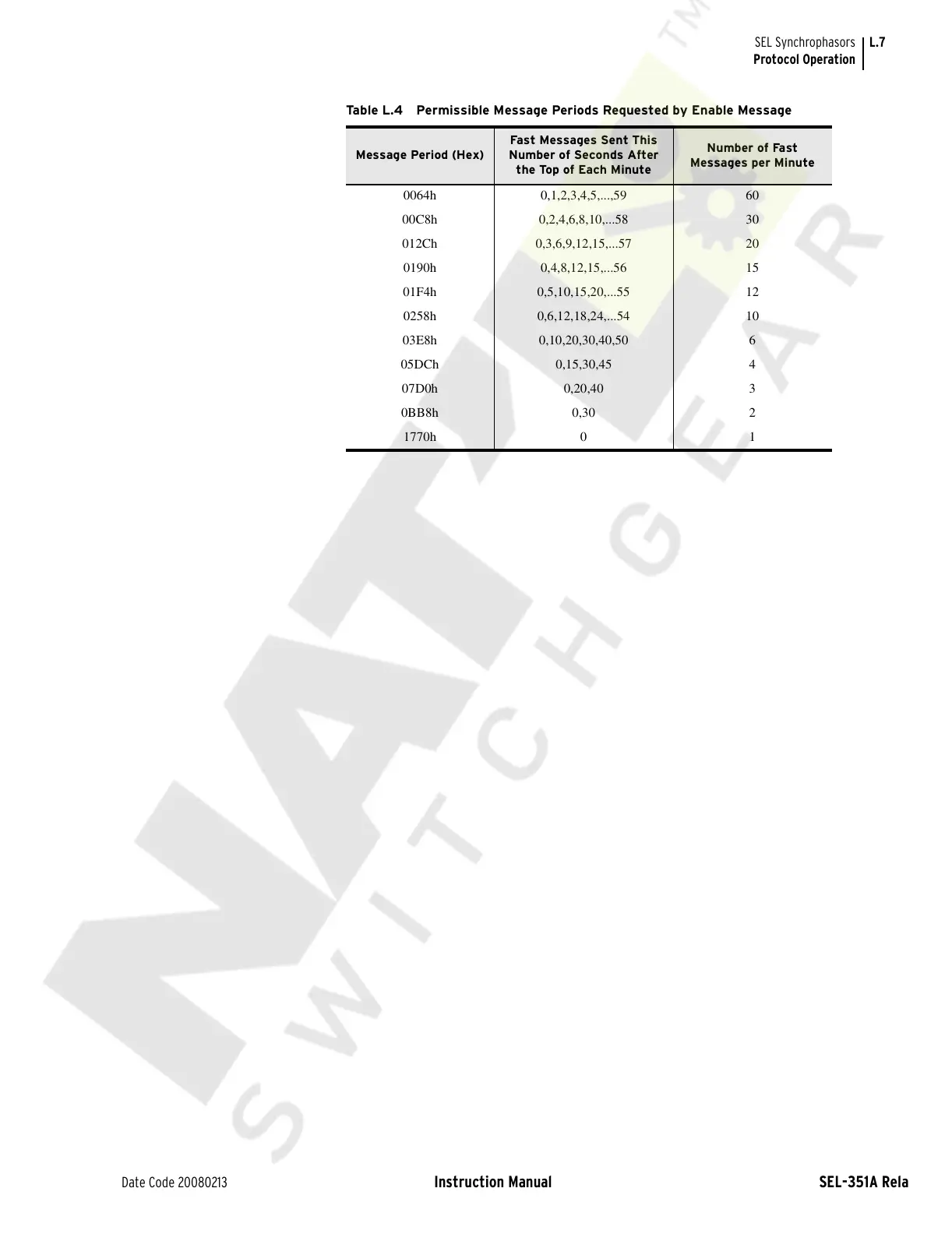 Table L.4 Permissible Message Periods Requested by Enable Message