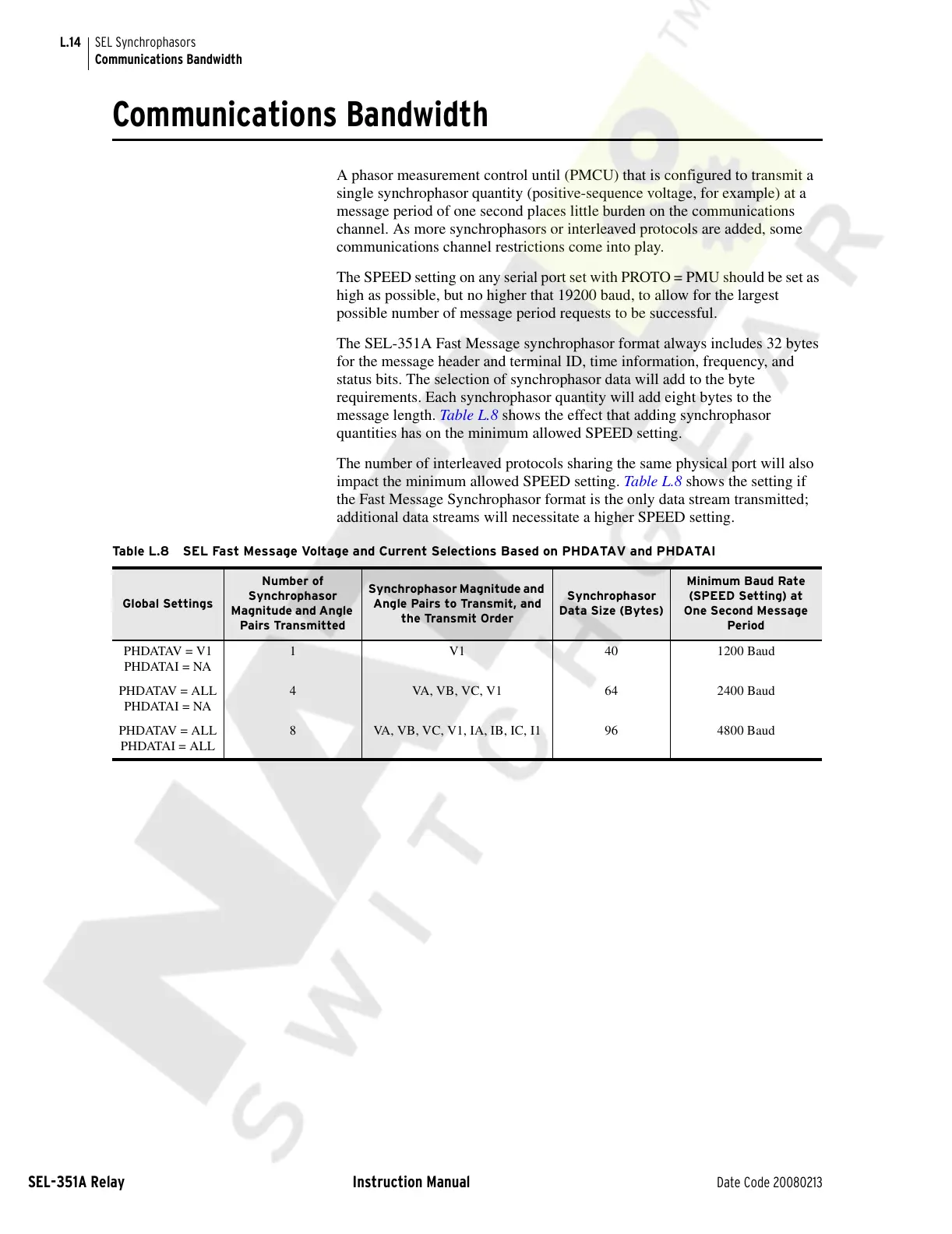 message length. Table L.8 shows the effect that adding synchrophasor