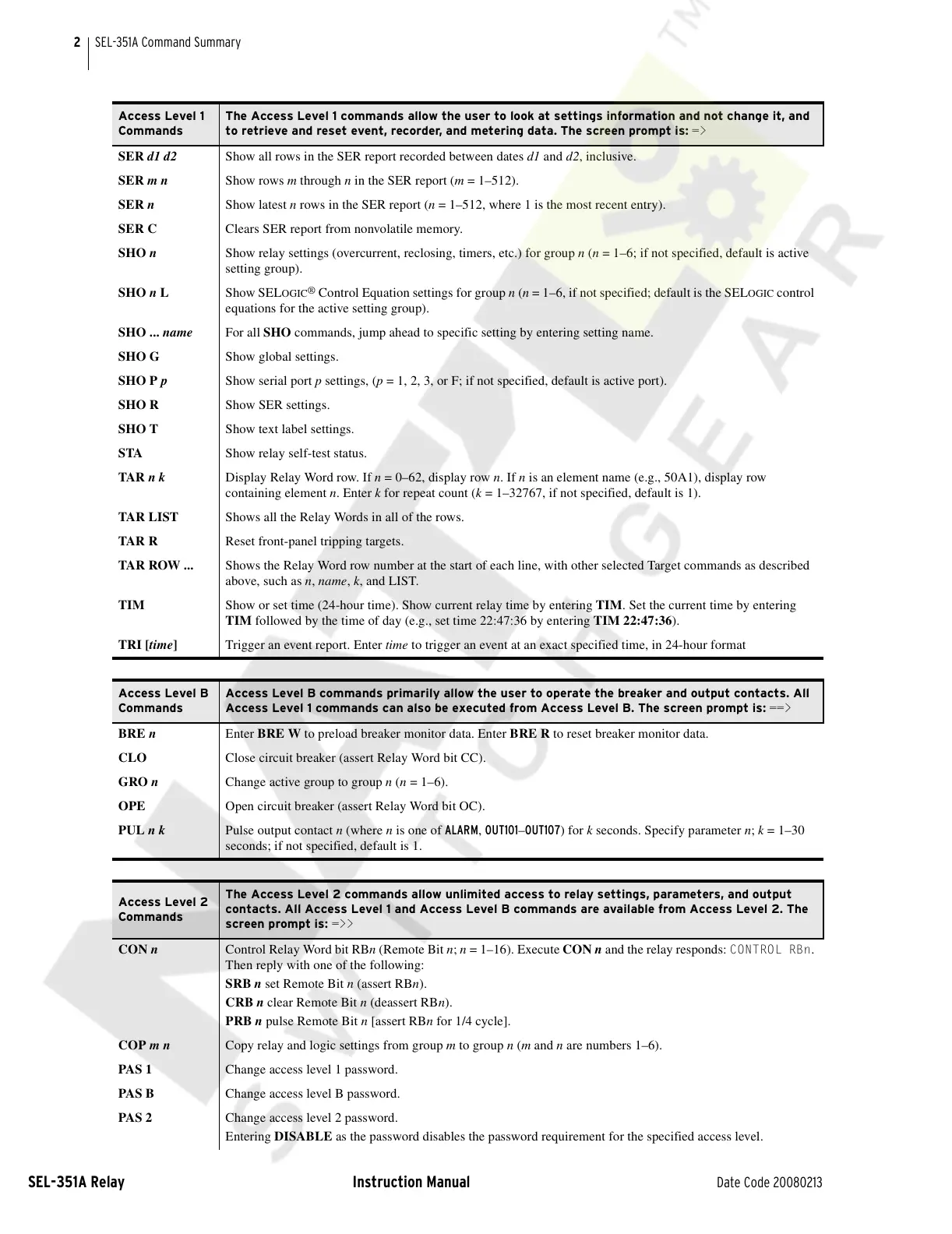 SEL-351A Command Summary