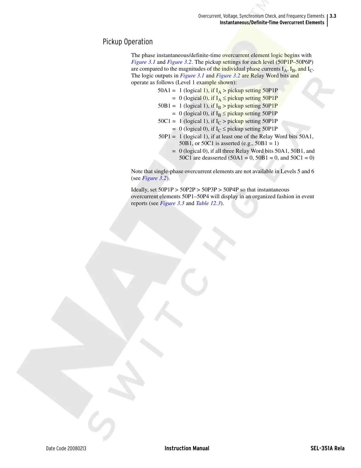 Figure 3.1 and Figure 3.2. The pickup settings for each level (50P1P–50P6P)