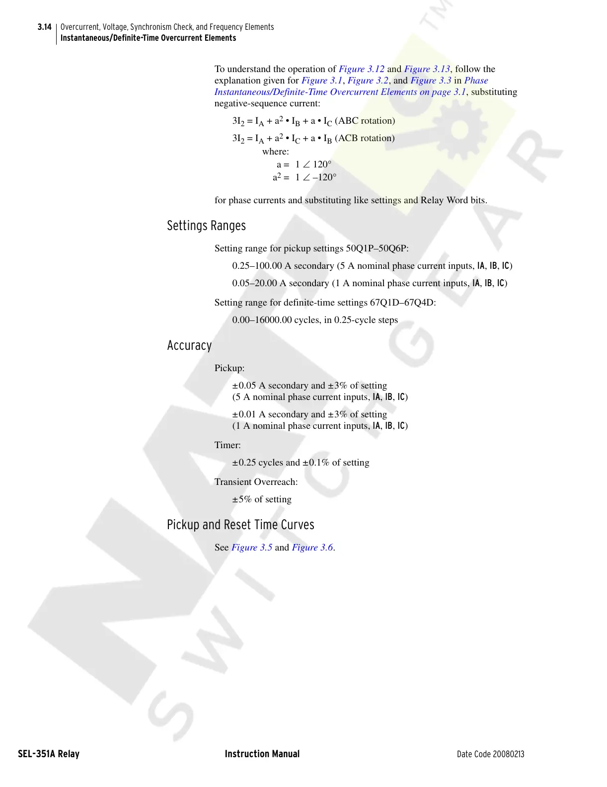 Instantaneous/Definite-Time Overcurrent Elements on page 3.1, substituting