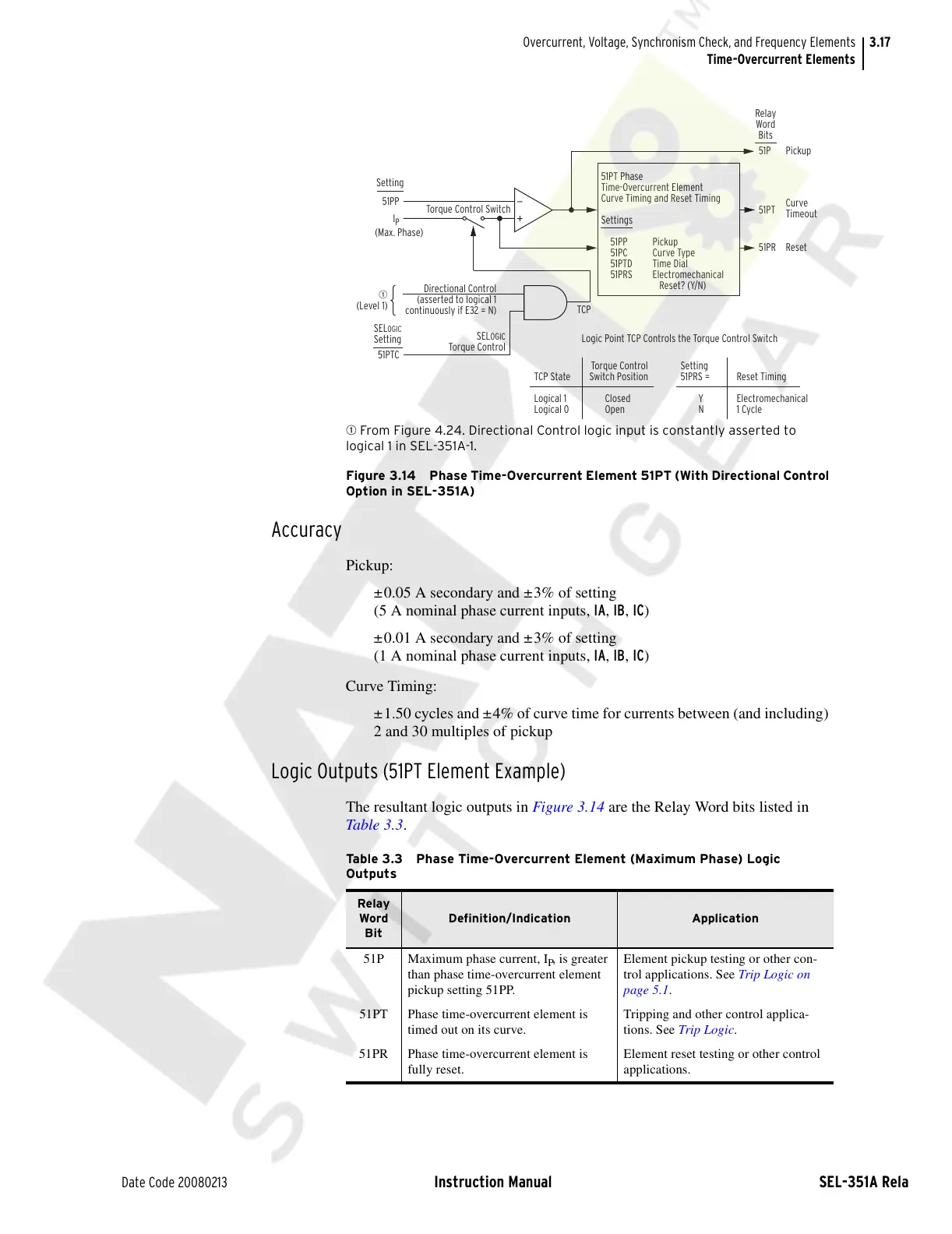 Table 3.3 Phase Time-Overcurrent Element (Maximum Phase) Logic