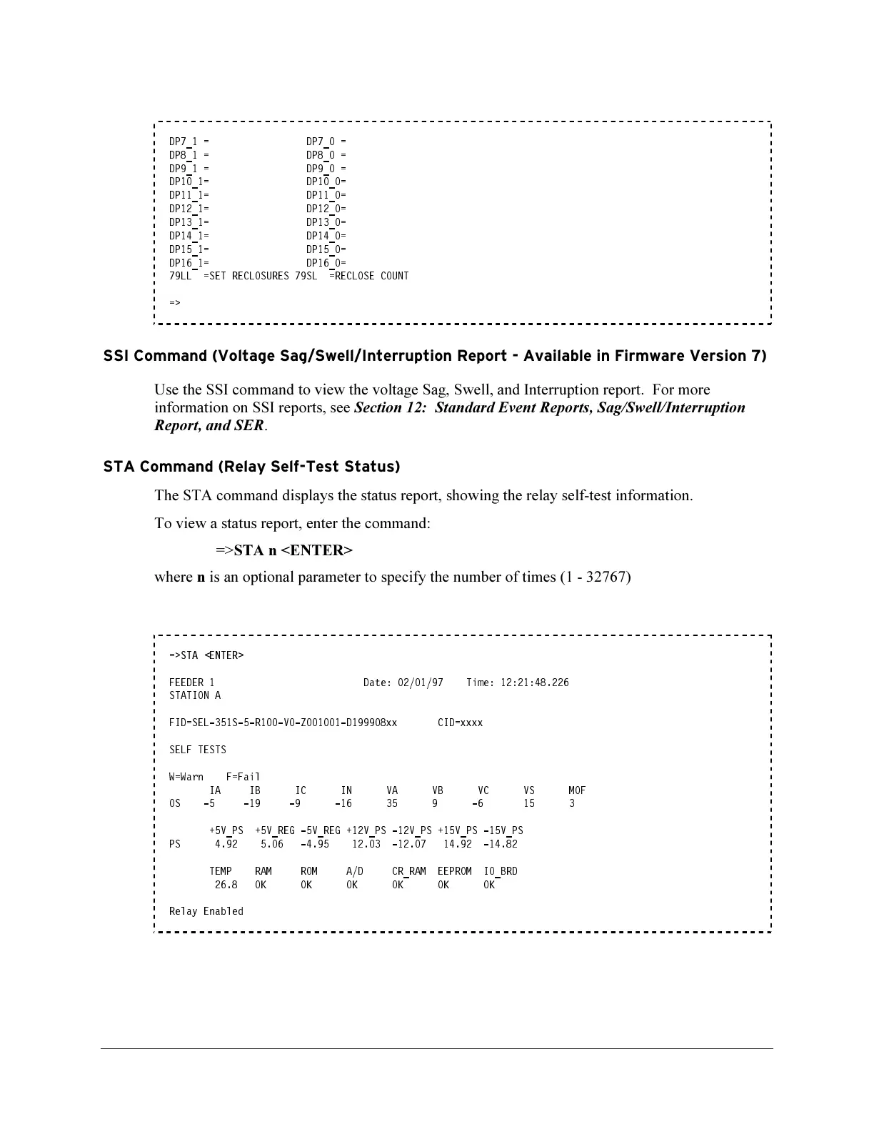 STA Command (Relay Self-Test Status)