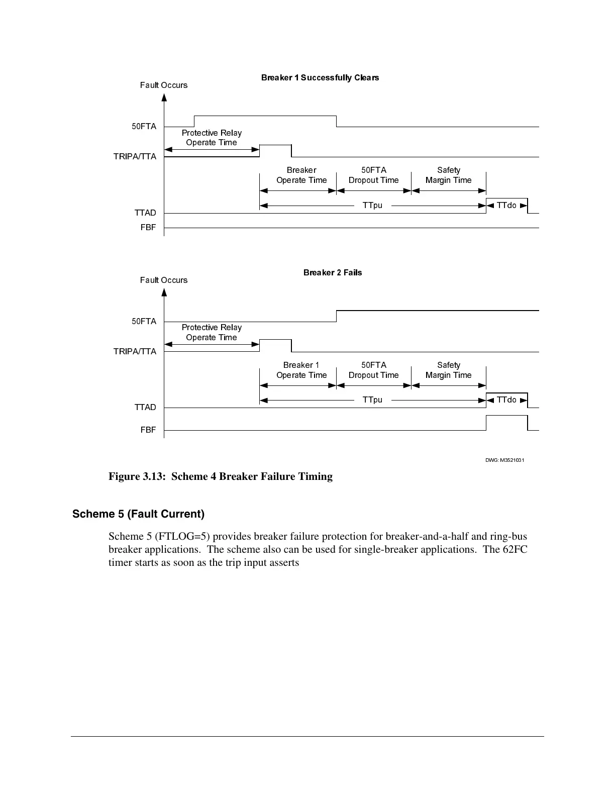 Scheme 5 (FTLOG=5) provides breaker failure protection for breaker-and-a-half and ring-bus
