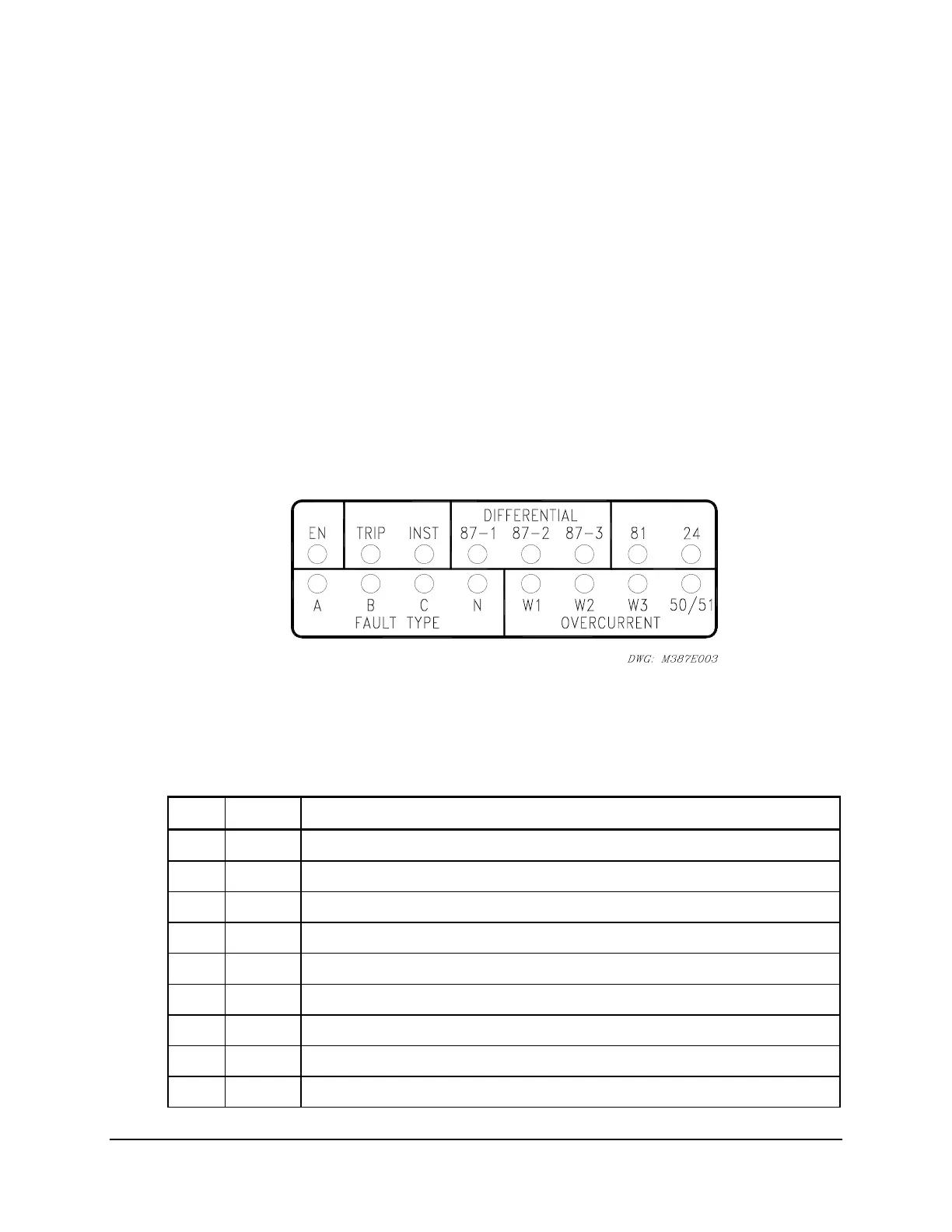 The SEL-387E Relay has 16 LEDs on the front panel. One (EN) is dedicated to indication of the