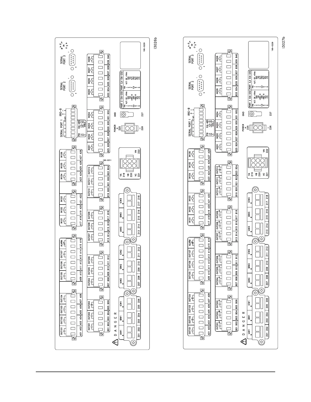 Figure 2.6: Rear-Panel Drawings–Models 0387ExYxxxx2 and 0387ExYxxxx6