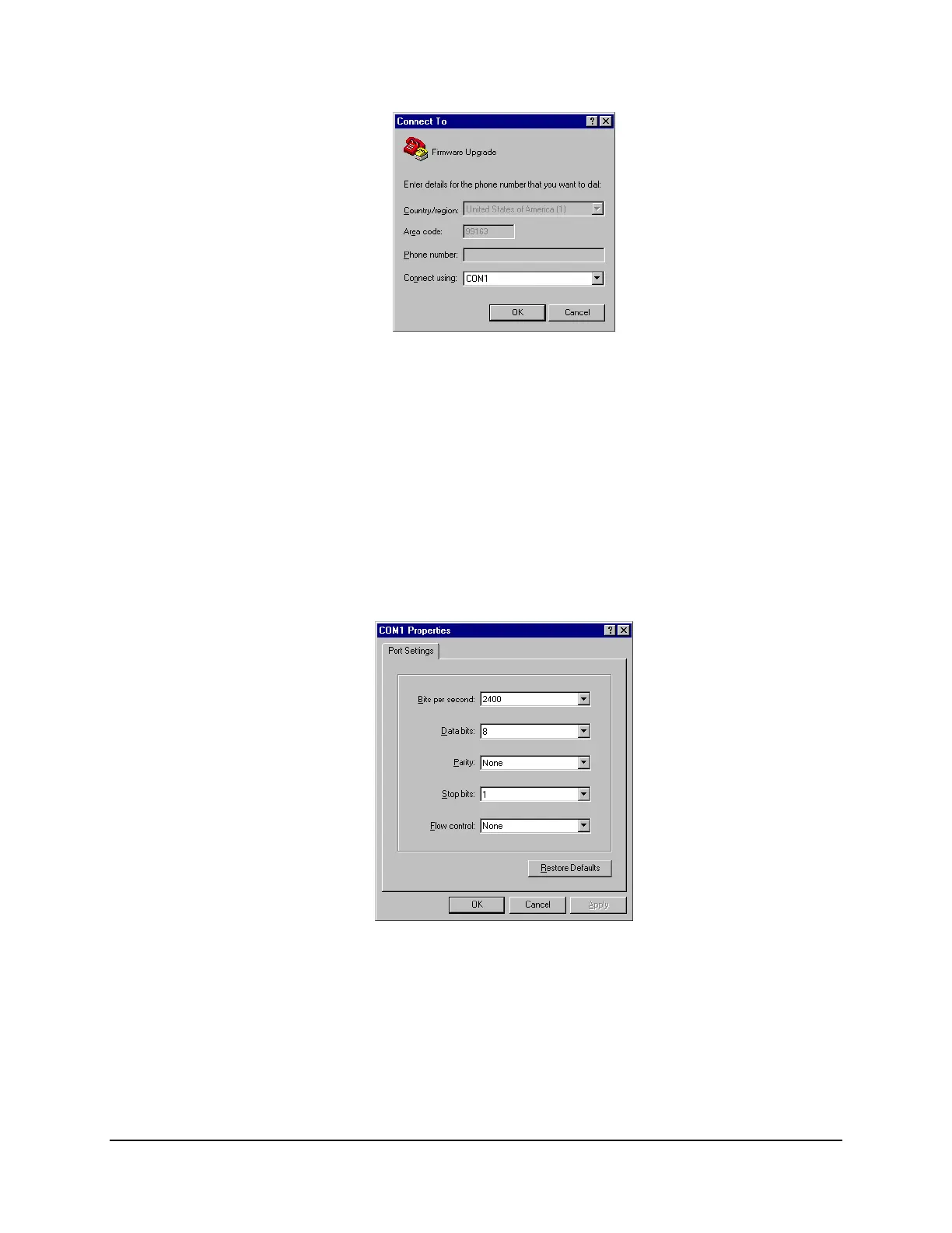 a. Enter the serial port communications parameters (