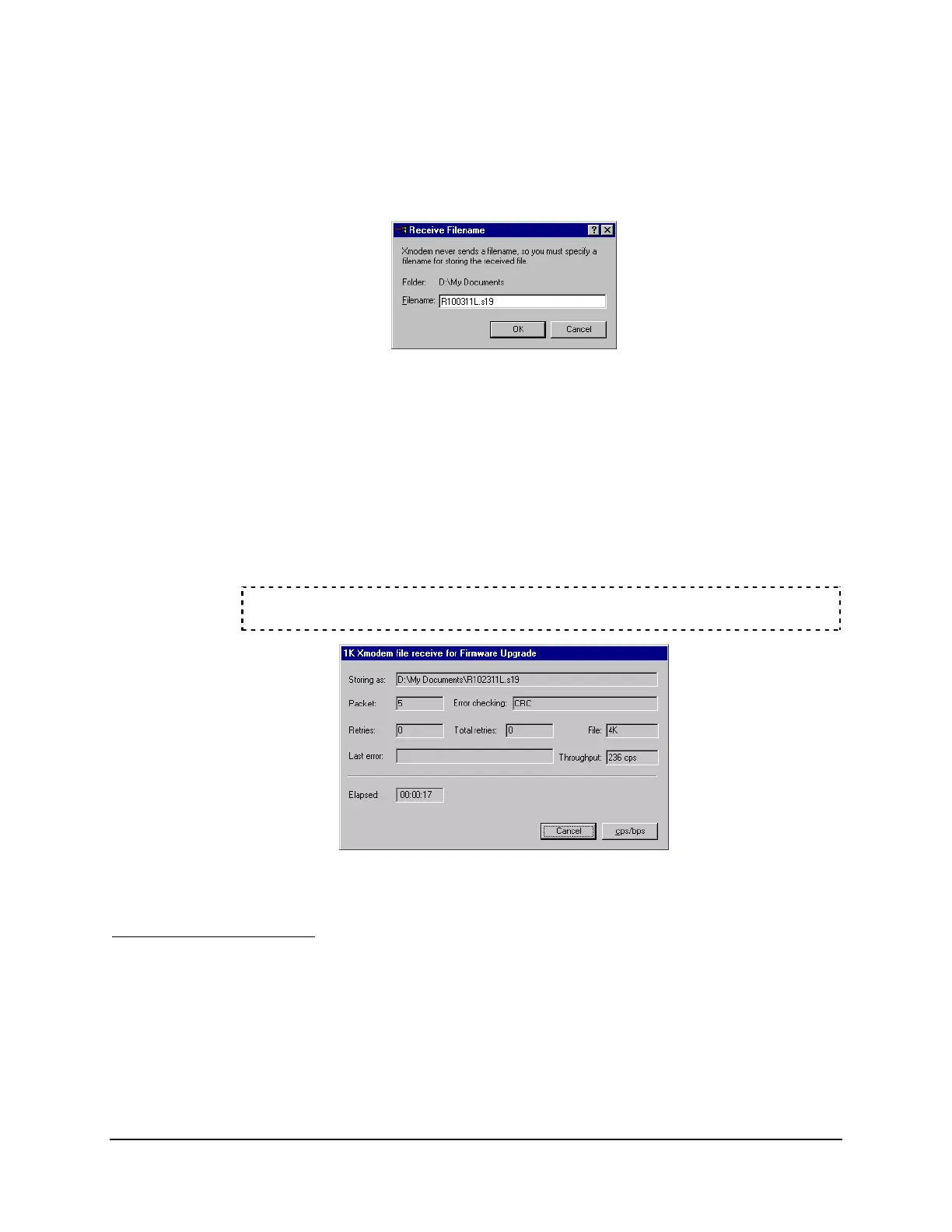 Note: HyperTerminal stored any pathname you entered in Step 3 and any filename