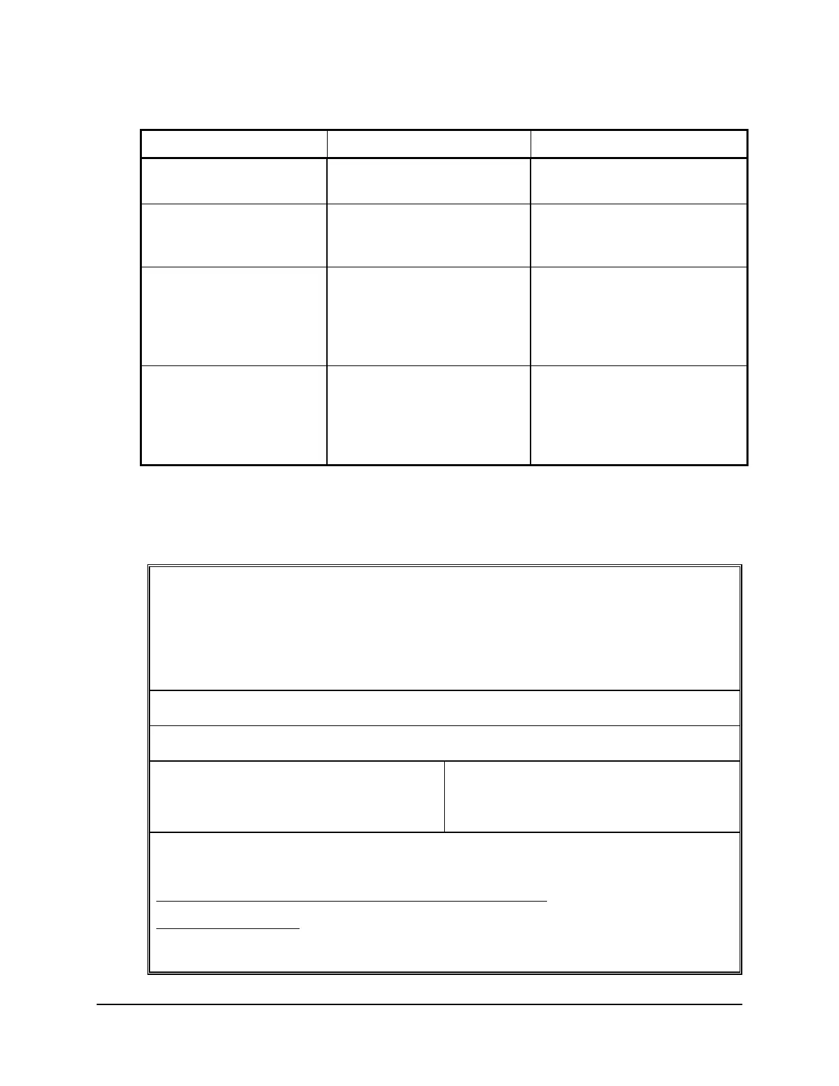 This document must be accompanied by a table having the following headings: