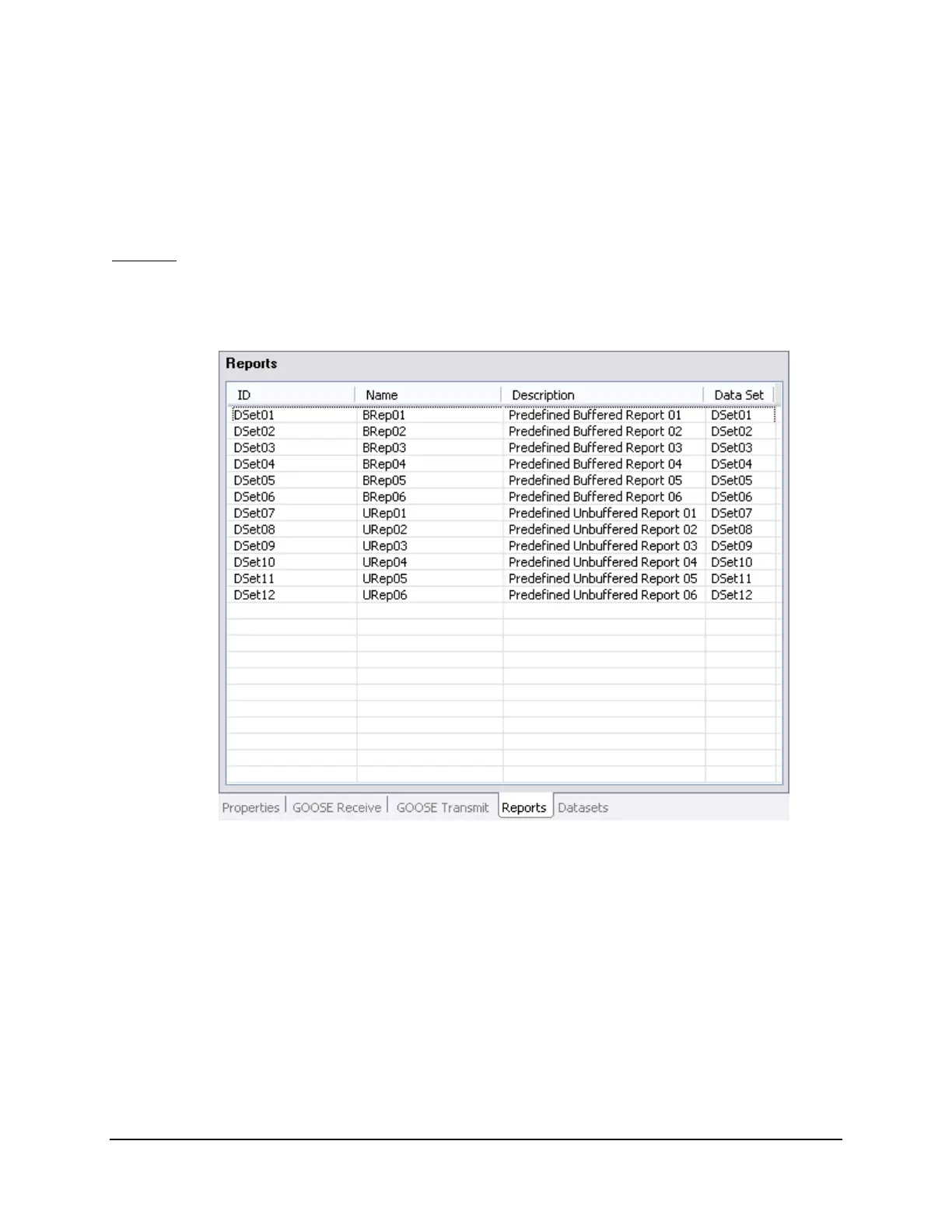 defined in IEC 61850-8-1:2004(E). The predefined reports shown in