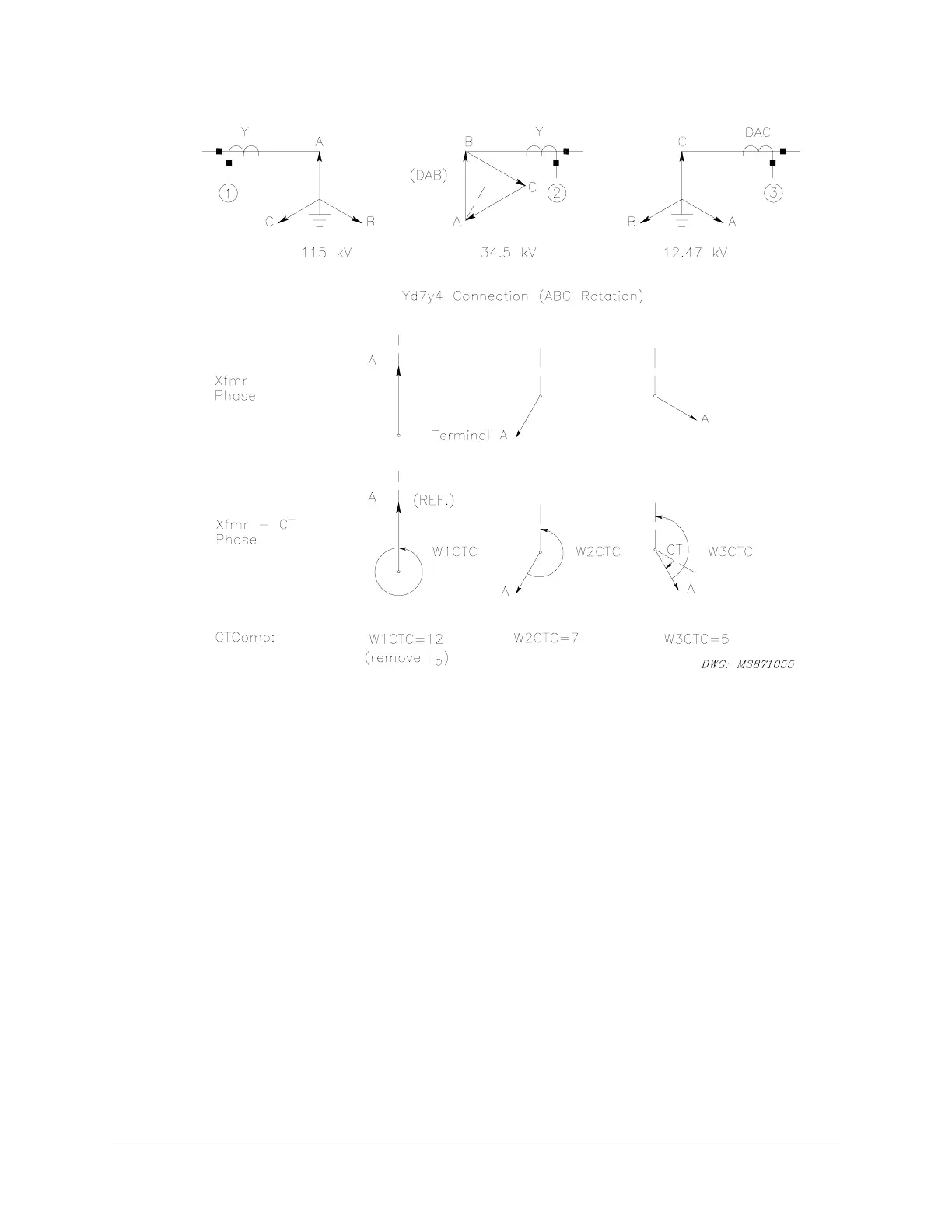 2 need no correction, because they both have wye-connected CTs. Winding 3 has DAC