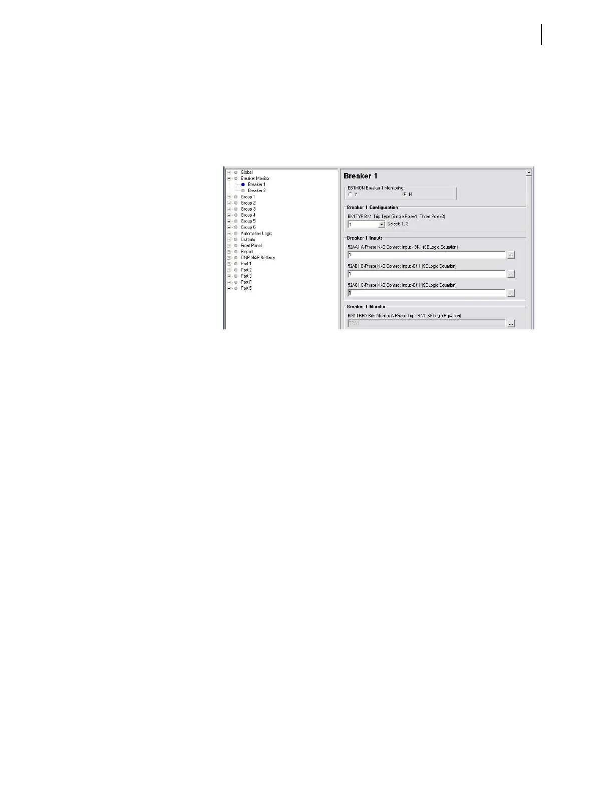 Figure 3.12 Breaker 1 Breaker Monitor Settings: QuickSet