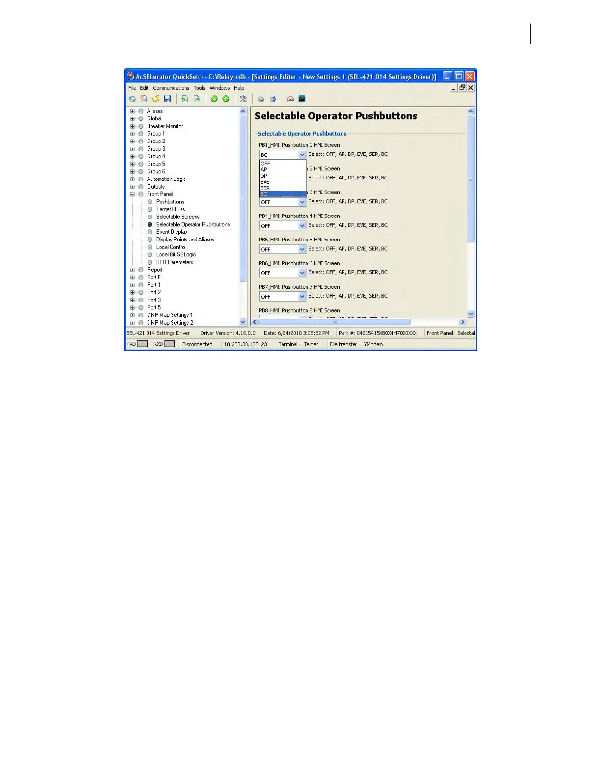 Figure 4.13 Configuring PB1_HMI for Direct Bay Control Access