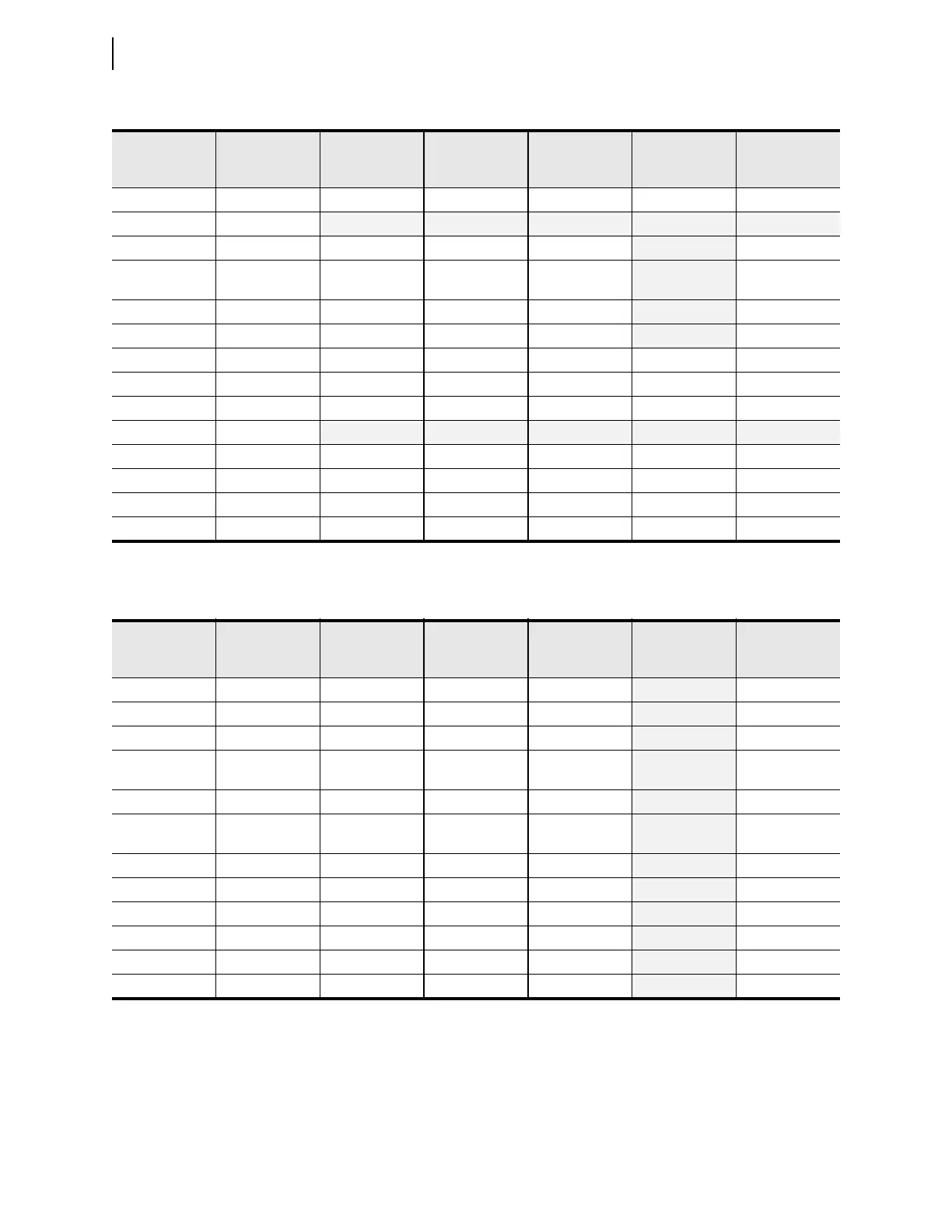 Shaded cells indicate settings forced to given values and hidden.