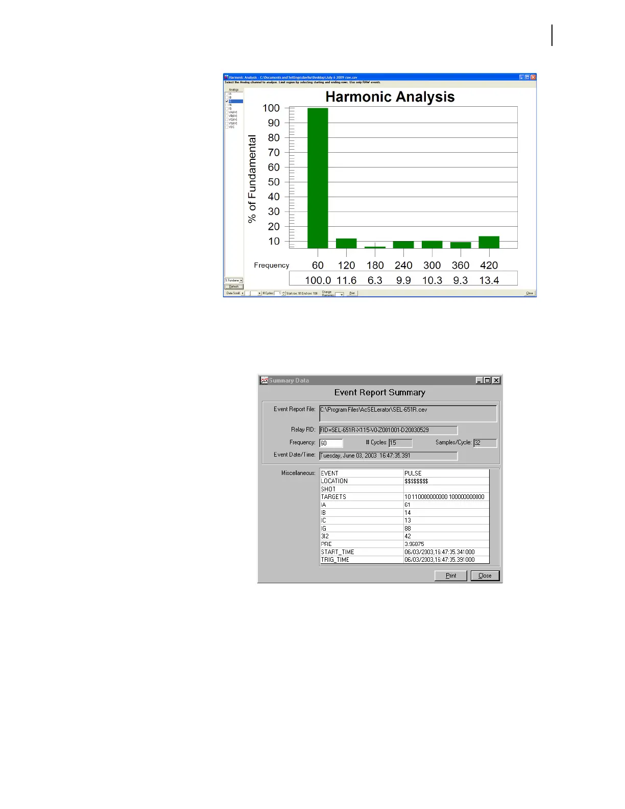 Figure 2.25 Sample Harmonic Analysis Event Waveform Screen