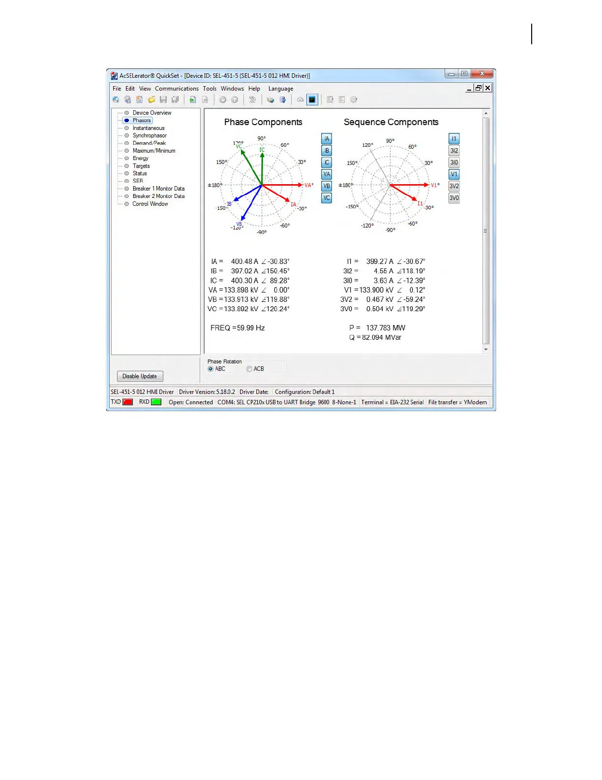 Figure 3.32 HMI Phasors View in QuickSet