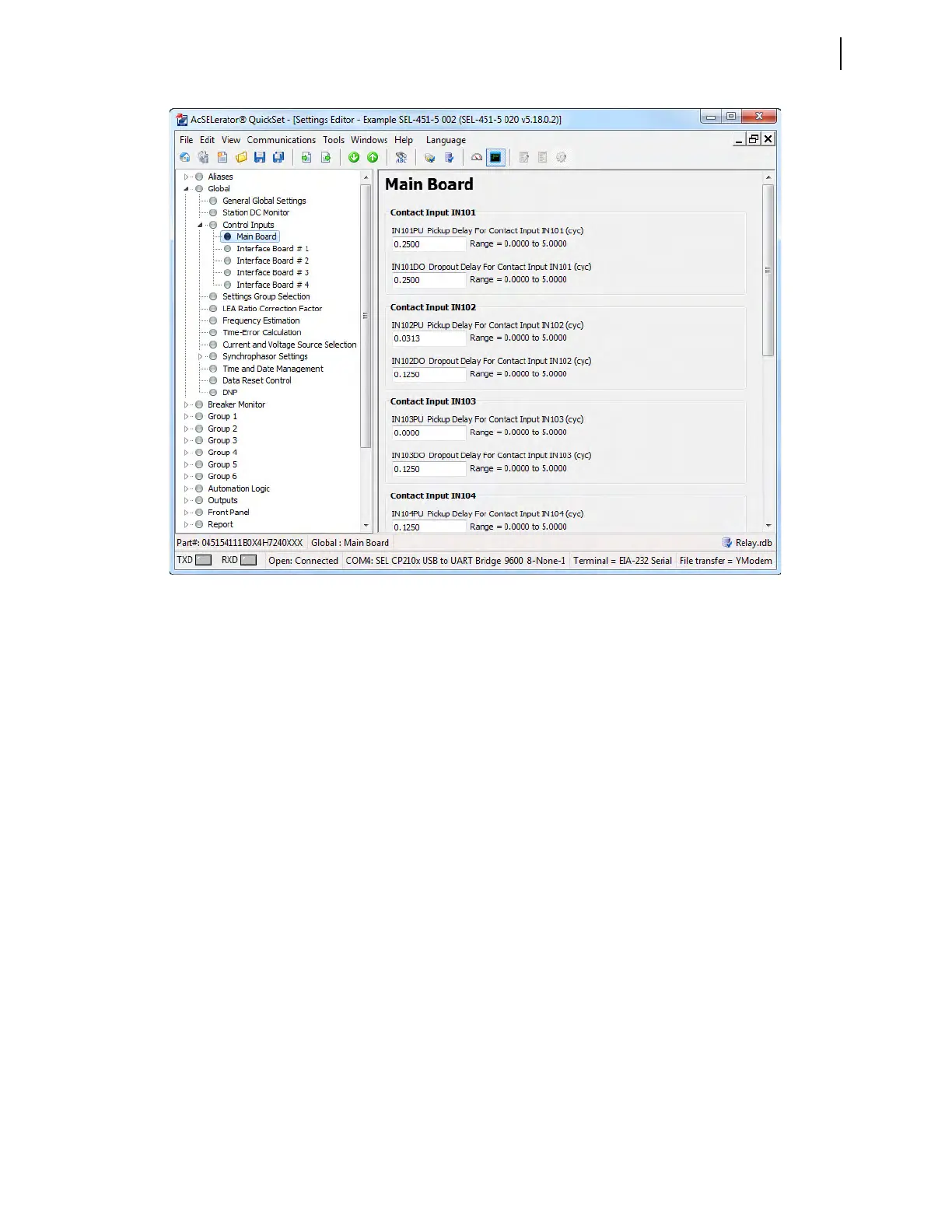 IN101PU Pickup Delay for Contact Input.