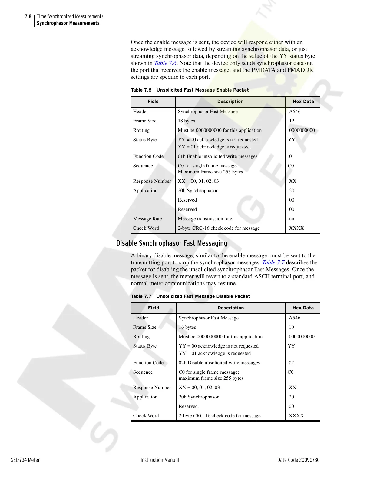 shown in Table 7.6. Note that the device only sends synchrophasor data out