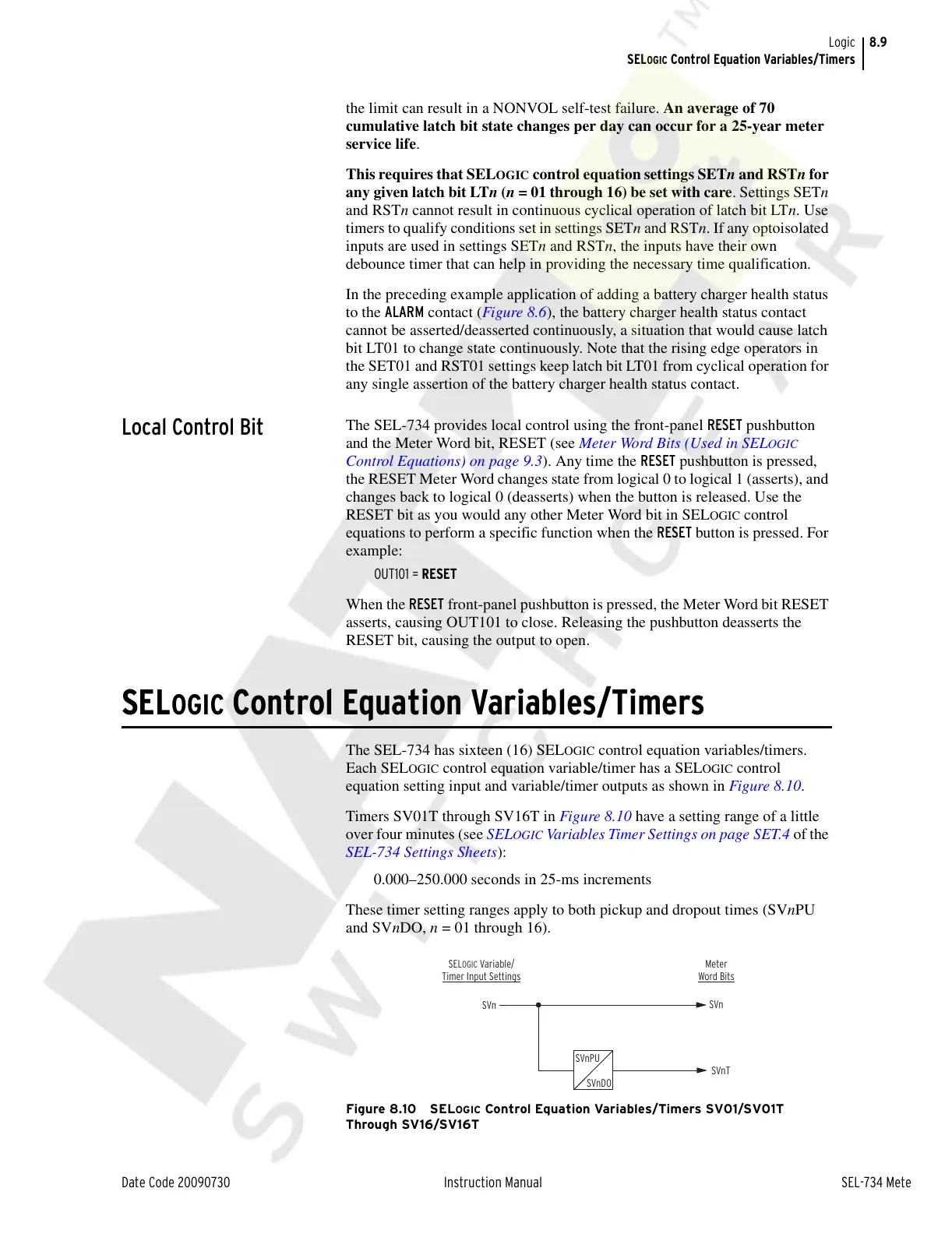Figure 8.10 SELOGIC Control Equation Variables/Timers SV01/SV01T