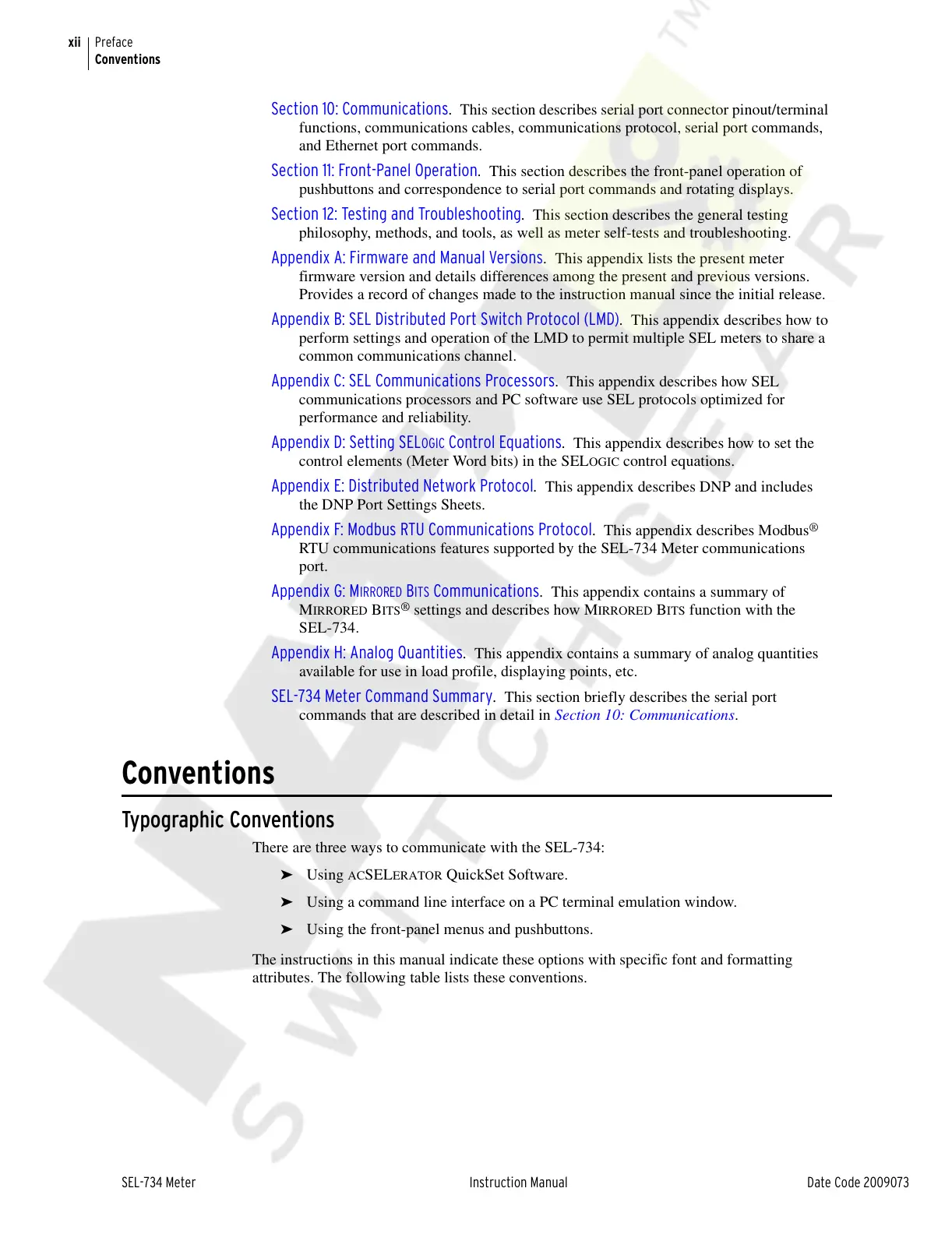 Appendix C: SEL Communications Processors. This appendix describes how SEL