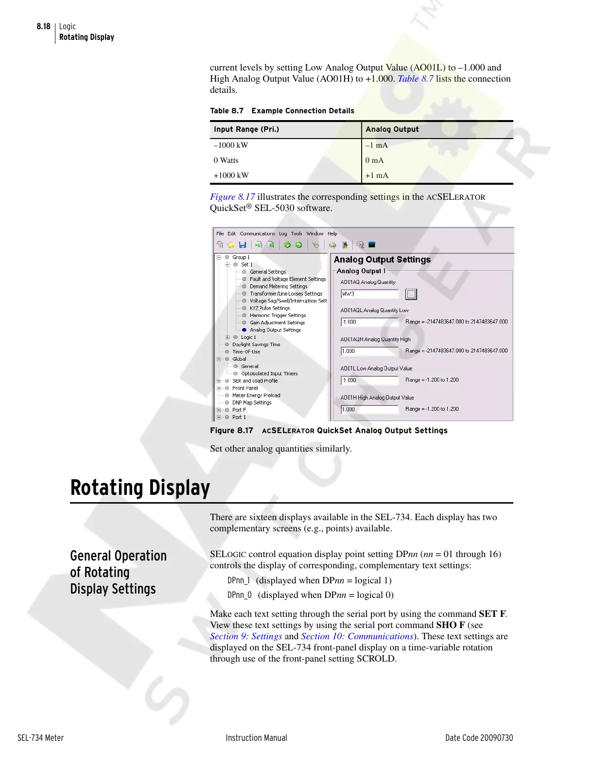 displayed on the SEL-734 front-panel display on a time-variable rotation